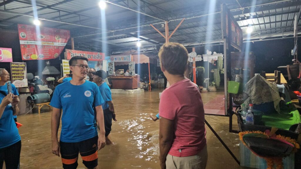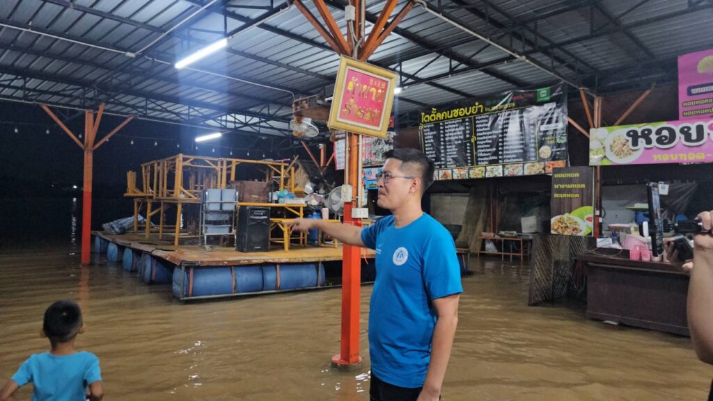ต่อมา เมื่อเวลา 18.00 น. นายมงคลกิตติ์ สุขสินธารานนท์ ที่ปรึกษาหัวหน้าพรรคประชาธิปัตย์ พร้อมทั้งทีมงานลงพื้นที่ สวนเทพปทุม อ.เมือง จังหวัดปทุมธานี เพื่อดูระดับน้ำในแม่น้ำเจ้าพระยา ซึ่งตรงจุดนี้จะมี ที่วัดระดับน้ำ อยู่และจะแสดงถึงระดับน้ำในปีต่างๆ อาทิ ระดับน้ำในปี 2554 และได้พูดคุยกับพี่น้องประชาชนริมแม่น้ำเจ้าพระยา และสอบถามถึงสถานการณ์น้ำ ขึ้น น้ำลง ในพื้นที่