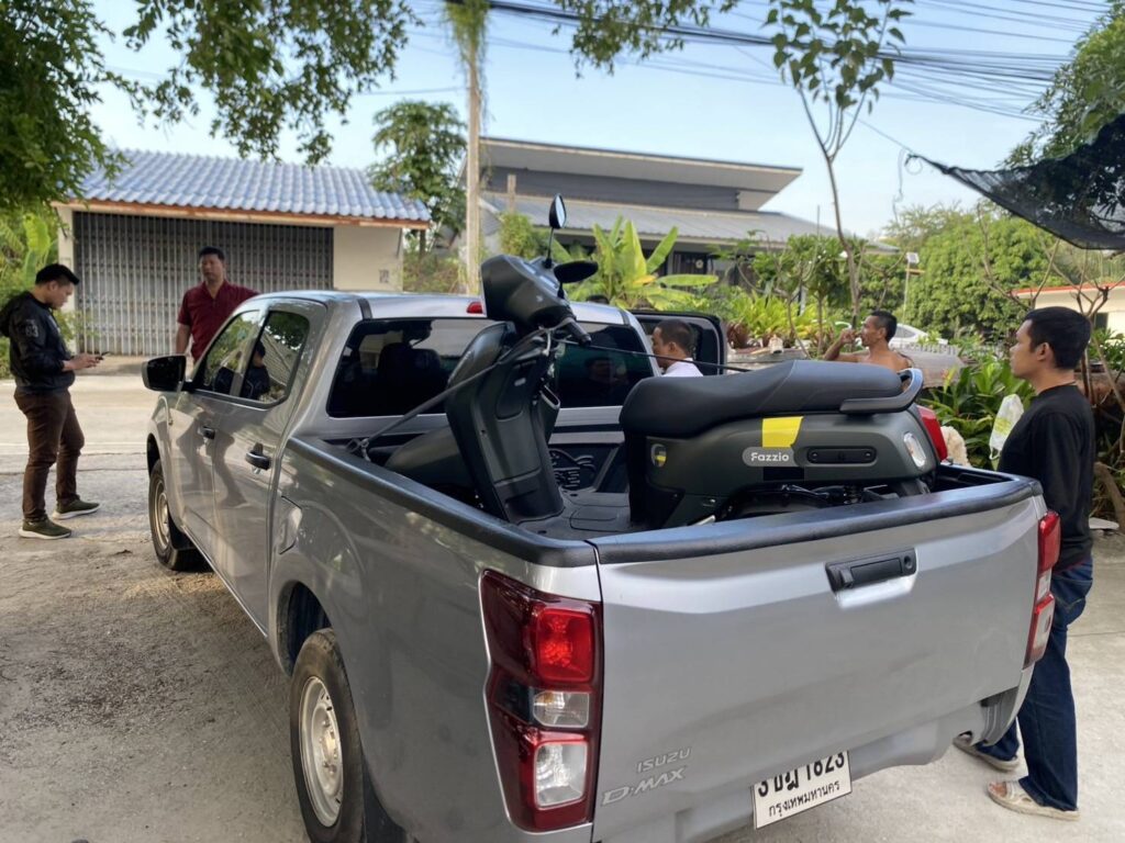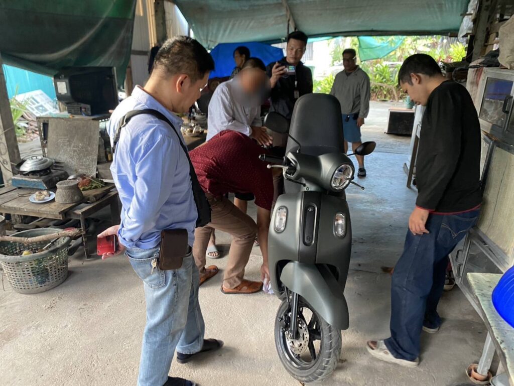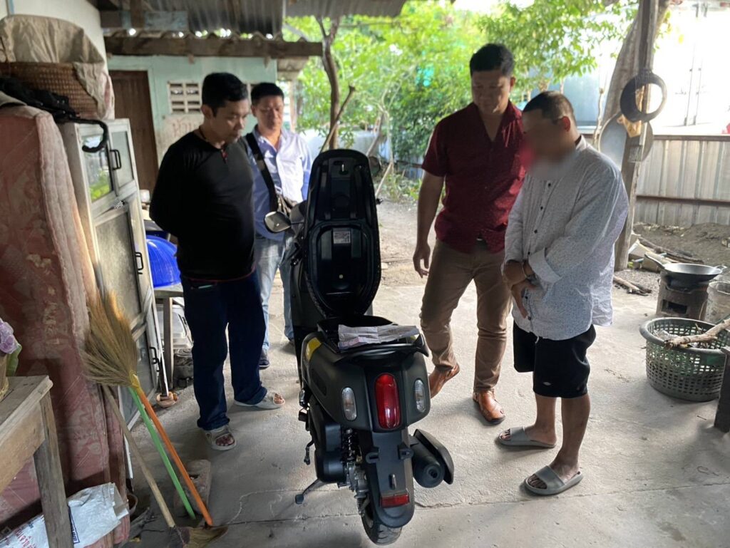 แจ้งข้อหา “ลักทรัพย์หรือรับของโจร” จับกุม ภายในบ้านเลขที่ 30/1 หมู่ที่ 6 ต.บ้านปึก อ.เมืองชลบุรี จ.ชลบุ พร้อมด้วยของกลาง รถจักรยานยนต์ยี่ห้อYAMAHA รุ่น FAZZIO สีเทา ไม่ติดแผ่นป้ายทะเบียน จำนวน 1 คัน พร้อมลูกกุญแจ