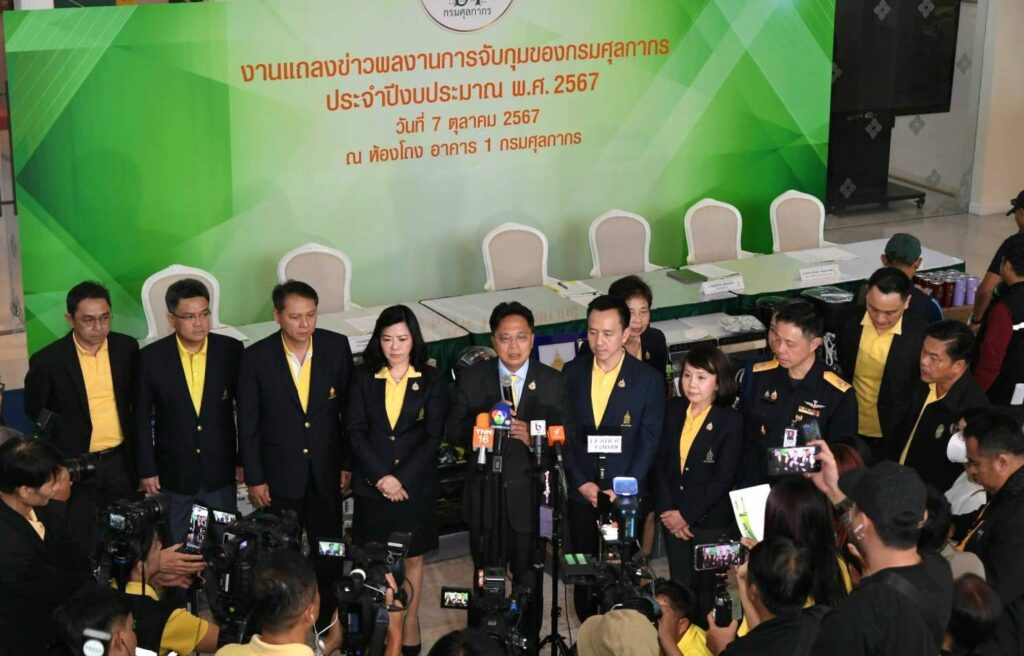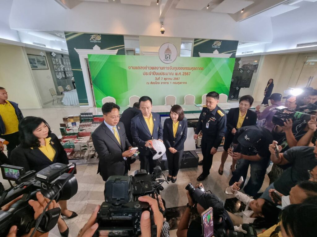 นายธีรัชย์ อัตนวานิช อธิบดีกรมศุลกากร กล่าวว่า ตามที่ นางสาวแพทองธาร ชินวัตร นายกรัฐมนตรี ได้สั่งการให้นายพิชัย ชุณหวชิร รองนายกรัฐมนตรีและรัฐมนตรีว่าการกระทรวงการคลัง และนายจุลพันธ์ อมรวิวัฒน์ รัฐมนตรีช่วยว่าการกระทรวงการคลัง ให้ความสำคัญกับการป้องกันและปราบปรามยาเสพติด สินค้าผิดกฎหมายสินค้าที่เป็นอันตรายต่อสังคมโดยกรมศุลกากรได้ขานรับนโยบายและเพิ่มความเข้มงวดในการดำเนินงานของเจ้าหน้าที่ศุลกากรในทุกช่องทางการขนส่ง เพื่อป้องกันและสกัดกั้นการกระทำความผิด โดยเฉพาะการลักลอบลำเลียงยาเสพติด สินค้าผิดกฎหมายทุกชนิด นอกจากนั้นยังได้บูรณาการร่วมกับหน่วยงานที่เกี่ยวข้องเพื่อประสานข้อมูลด้านการข่าวและลงพื้นที่ปราบปรามผู้กระทำผิด โดยในปีงบประมาณ พ.ศ. 2567 (วันที่ 1 ตุลาคม 2566-30 กันยายน 2567) กรมศุลกากรตรวจยึดสิ่งผิดกฎหมายเข้ามาในและออกไปนอกราชอาณาจักร จำนวนรวมทั้งสิ้น 39,282 คดี มูลค่า 2,607.36 ล้านบาท มีผลการจับกุมที่น่าสนใจ ดังนี้