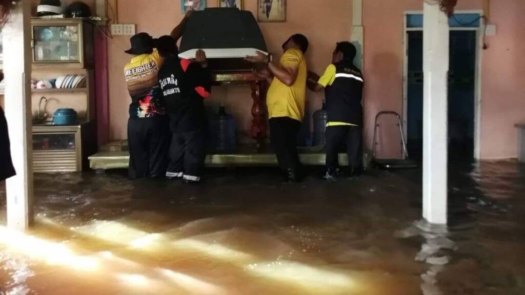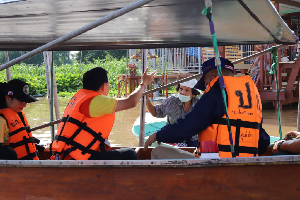 สำหรับในพื้นที่อำเภอสามโคก ผู้ว่าราชการจังหวัดปทุมธานี พร้อมด้วย นายศรัณย์ เกตุทอง นายอำเภอสามโคก นายยอด ภู่เฉลิมตระกูล นายก อบต.คลองควาย เจ้าหน้าที่สำนักงานสาธารณสุขอำเภอสามโคก ทีมกำนัน ผู้ใหญ่บ้าน อสม. ในพื้นที่อำเภอสามโคก ได้ร่วมลงเรือเพื่อตรวจดูสถานการณ์น้ำริมฝั่งแม่น้ำเจ้าพระยา ที่ ตำบลคลองควาย พร้อมพูดคุยให้กำลังใจชาวบ้านที่อาศัยอยู่ริมฝั่งแม่น้ำเจ้าพระยา และผู้ป่วย โดยมีการนำข้าวสาร อาหารแห้ง ผ้าอ้อมผู้ใหญ่ และน้ำดื่ม มอบให้กับชาวบ้านที่อาศัยอยู่ริมน้ำและได้รับผลกระทบจากสถานการณ์น้ำที่เพิ่มสูงขึ้น ด้านนายสายชล ภู่เฉลิมตระกูล กำนันตำบลคลองควาย พร้อมทีมงานได้ลงพื้นที่ช่วยยกข้าวของช่วยเหลือชาวบ้านที่ได้รับผลกระทบน้ำเอ่อล้นตลิ่งแม่น้ำเจ้าพระยา