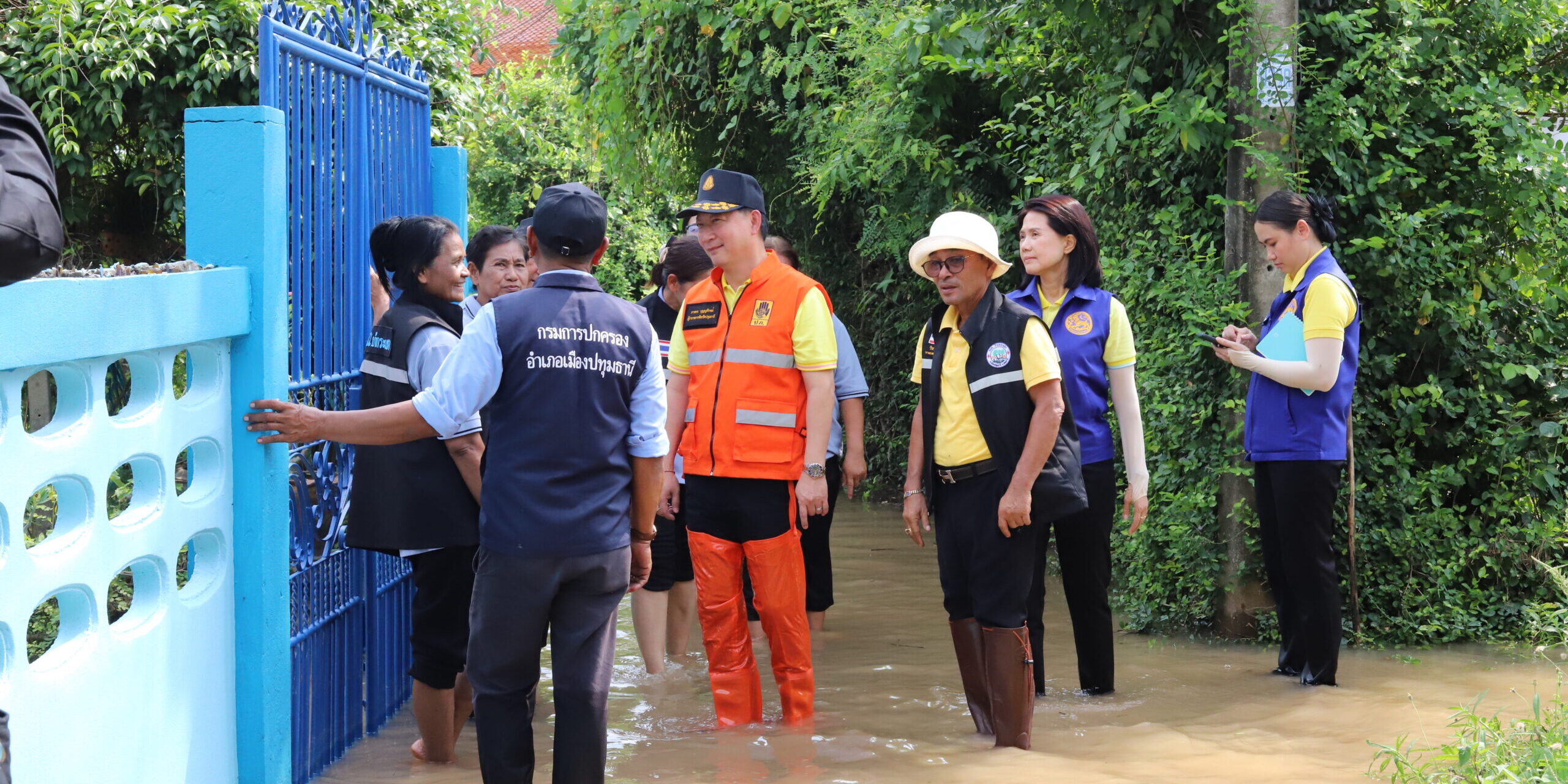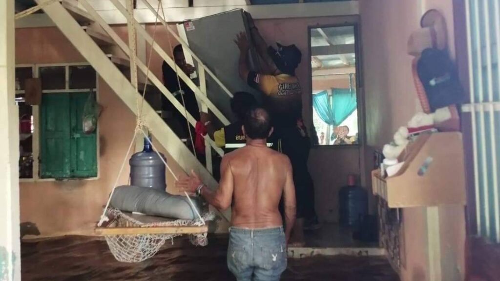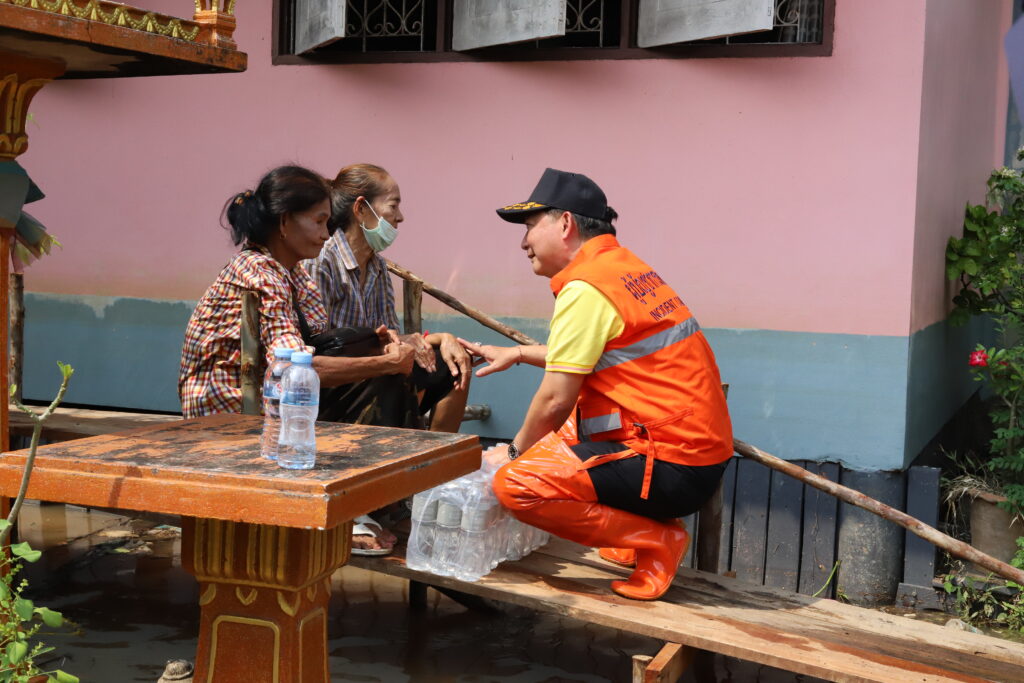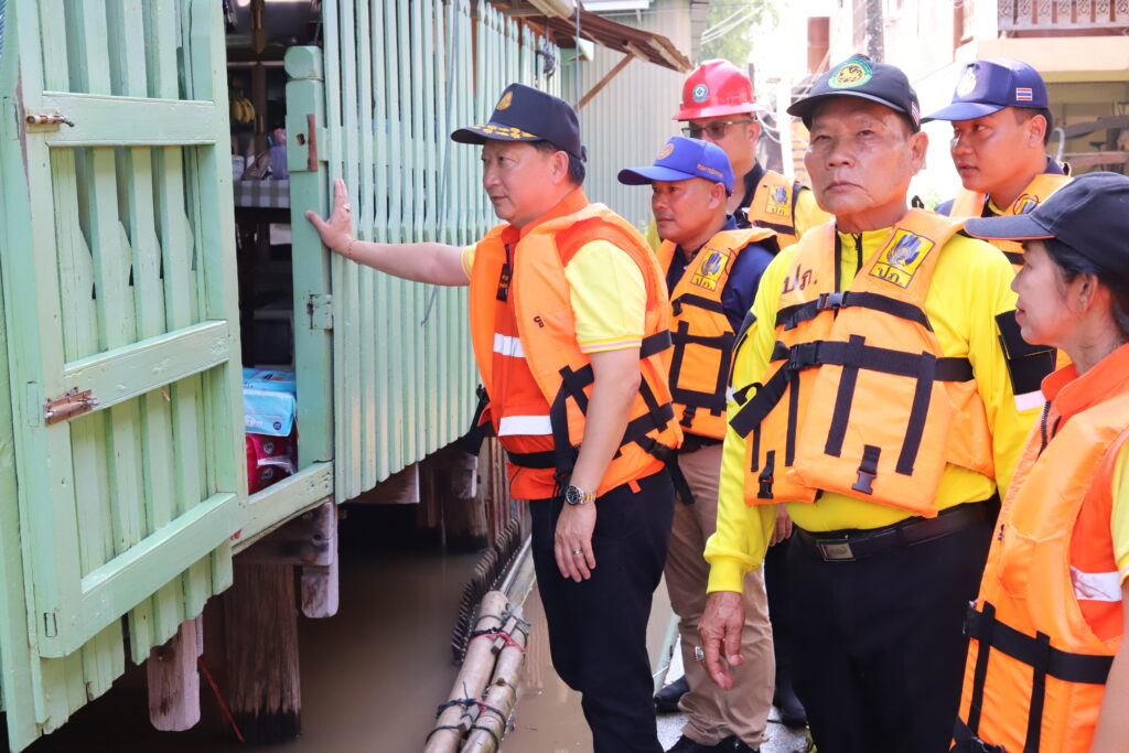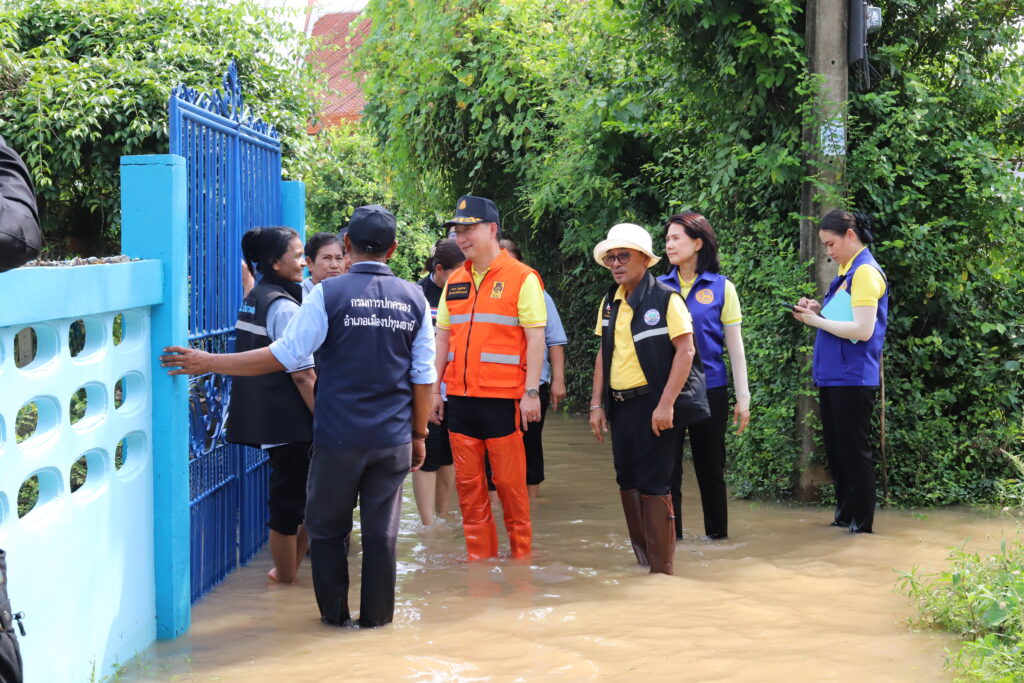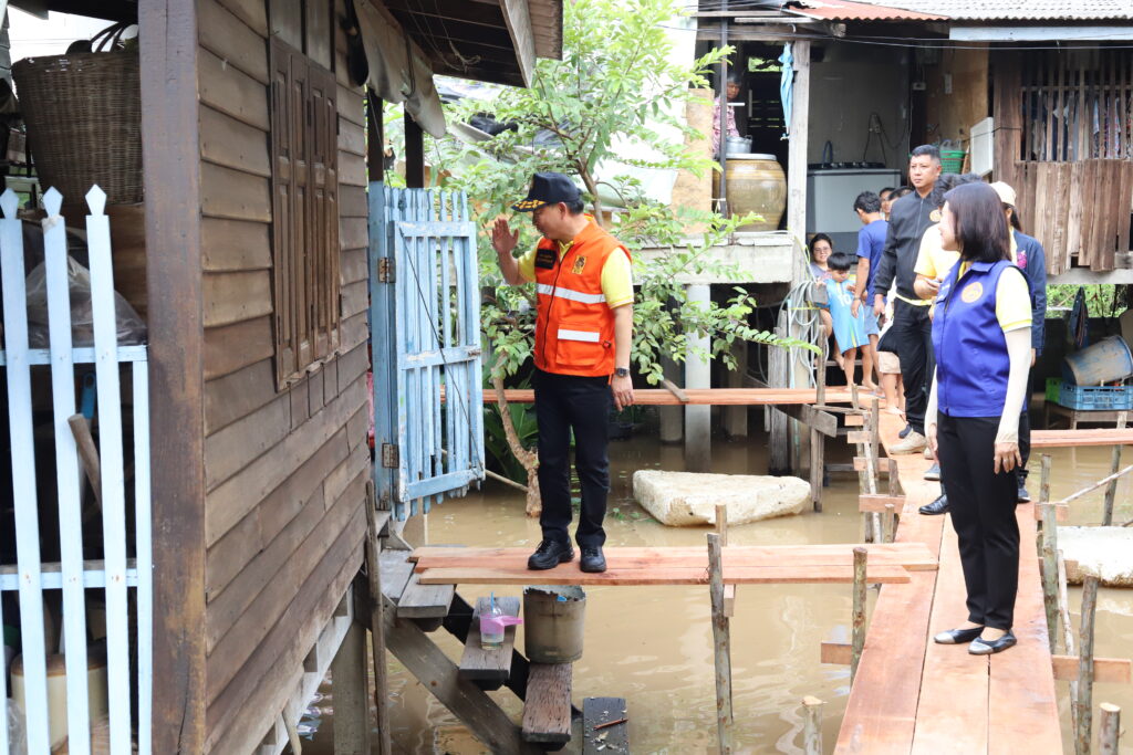ทั้งนี้ ในพื้นที่อำเภอเมืองปทุมธานี ที่บริเวณชุมชนริมแม่น้ำเจ้าพระยา หมู่ที่ 2 ตำบลบ้านกระแชง มีน้ำเอ่อล้นจากแม่น้ำเข้าสู่พื้นที่ชุมชนสูงประมาณ 30 เซนติเมตร มีน้ำเอ่อล้นตลิ่ง และ อบต.บ้านกระแชง ได้ทำสะพานเพื่ออำนวยความสะดวกให้กับชาวบ้านในการเดินทางเข้า -ออกในพื้นที่ โดยนางวิพร แววศรีผ่อง นายอำเภอเมืองปทุมธานี นายวีระ เจริญรอด นายก อบต.บ้านกระแชง พร้อมด้วย ทีมงานกำนัน ผู้ใหญ่บ้าน ฯลฯ ตำบลบ้านกระแชง อสม. และสมาชิก อส.อ.เมืองปทุมธานี ร่วมลงพื้นที่พร้อมให้กำลังใจชาวบ้าน และมอบน้ำดื่มให้แก่ครัวเรือนที่ได้รับผลกระทบ