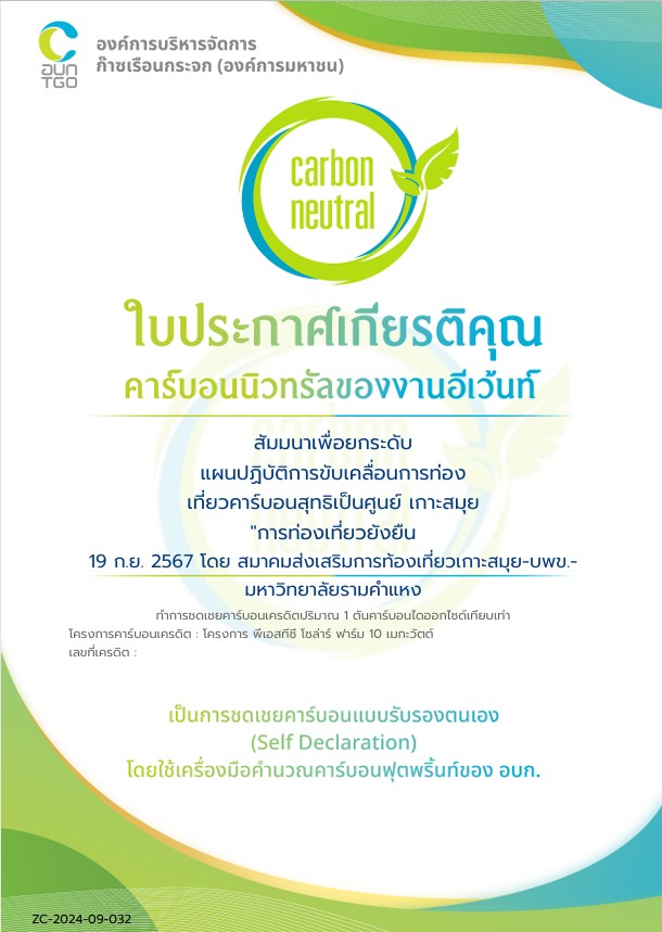 ผนึกพลังขับเคลื่อนการท่องเที่ยวคาร์บอนสุทธิเป็นศูนย์ (Carbon Neutral Tourism) ของเกาะสมุย