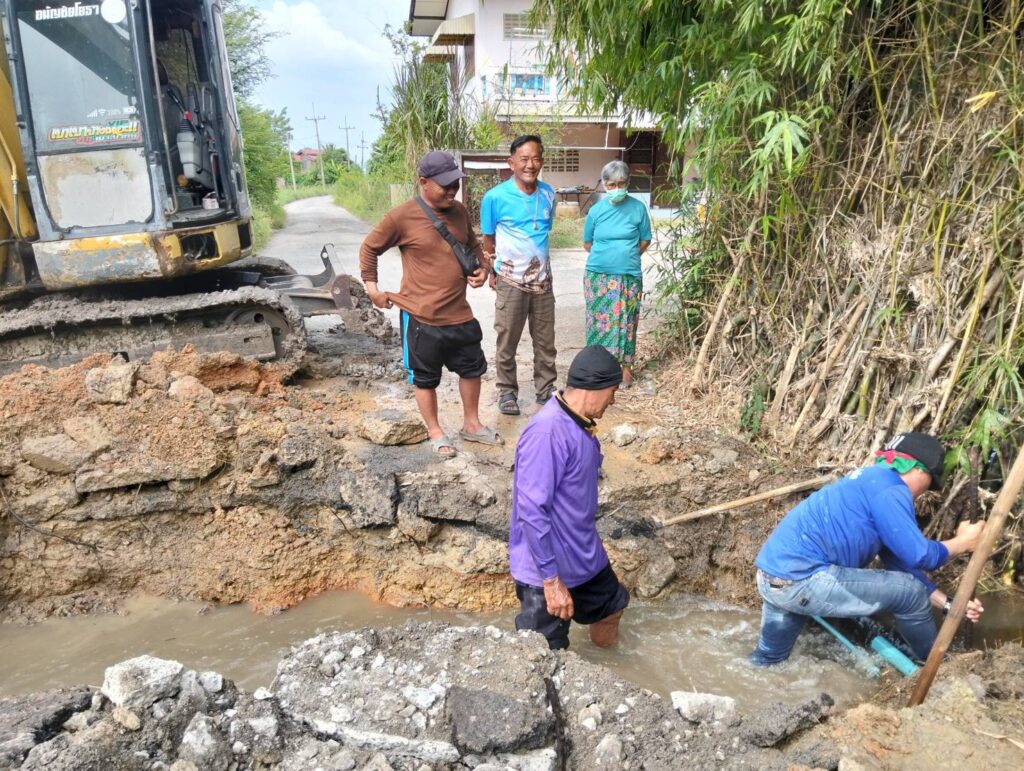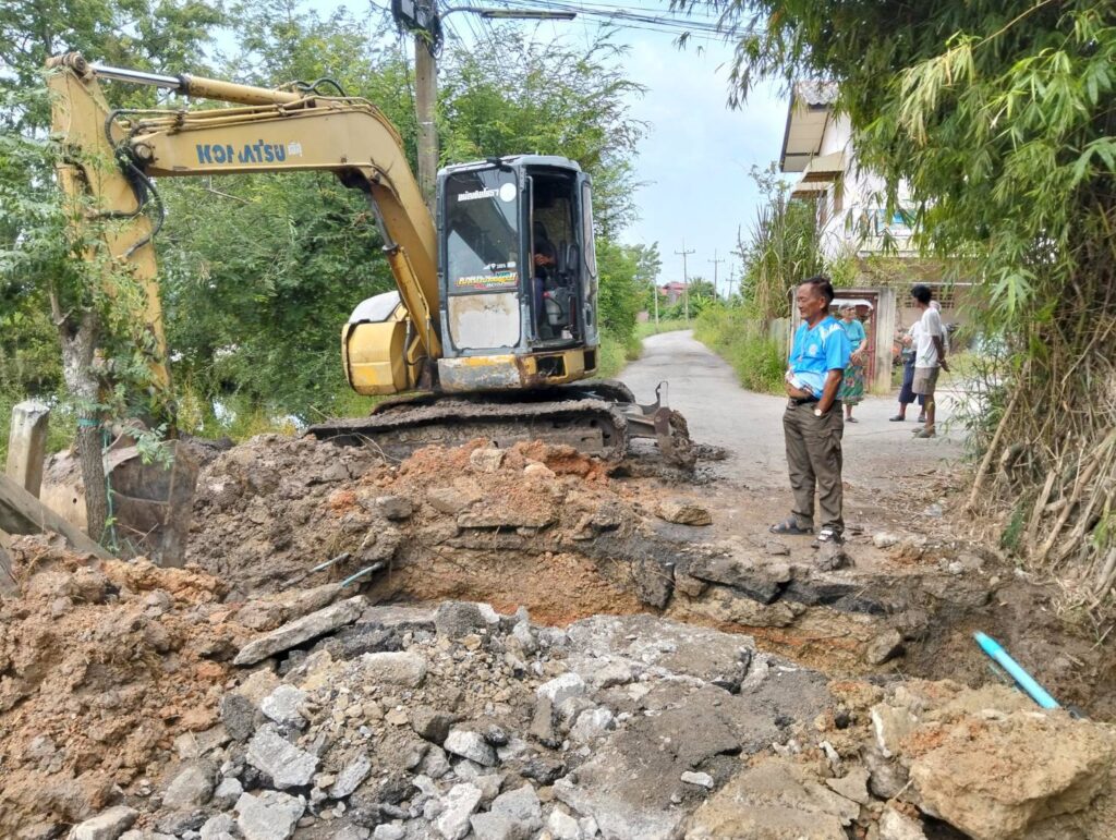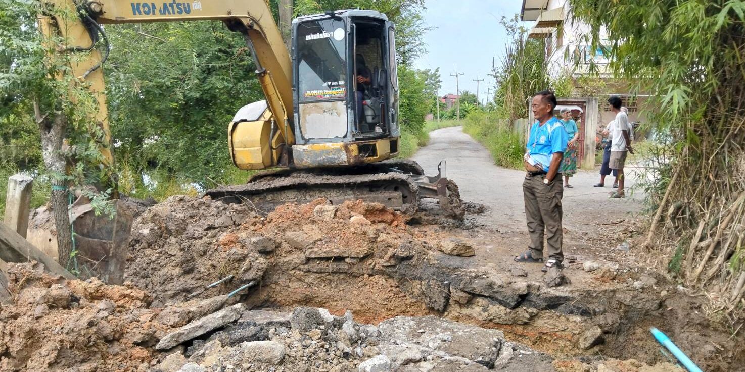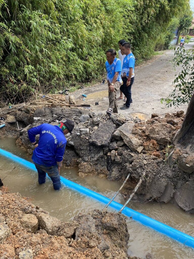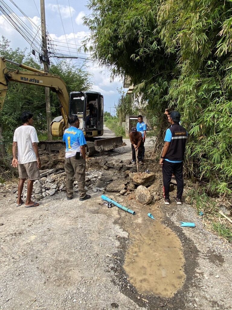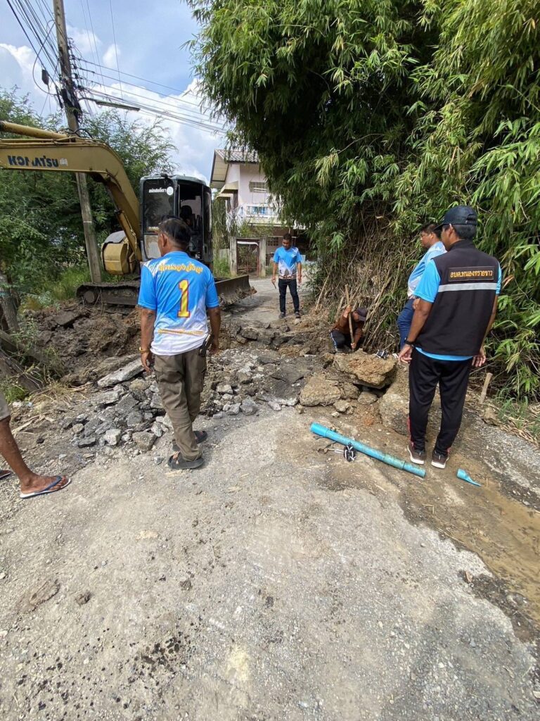 ได้พาทีมงานกองช่าง อบต. หนองทรายขาว พร้อมด้วยเครื่องจักร ลงพื้นที่บริเวณถนนสามแยกบ้านของ นายคำรณ ชินบุตร หมู่ที่ 4 บ้านสระเตยใหญ่ เพื่อทำการวาง “ท่อระบายน้ำ ให้กับผู้ที่ได้รับผลกระทบน้ำท่วมขังบริเวณนั้นจำนวนหลายหลัง ” ได้ดำเนินการวางท่อให้เสร็จเป็นที่เรียบร้อยแล้ว
