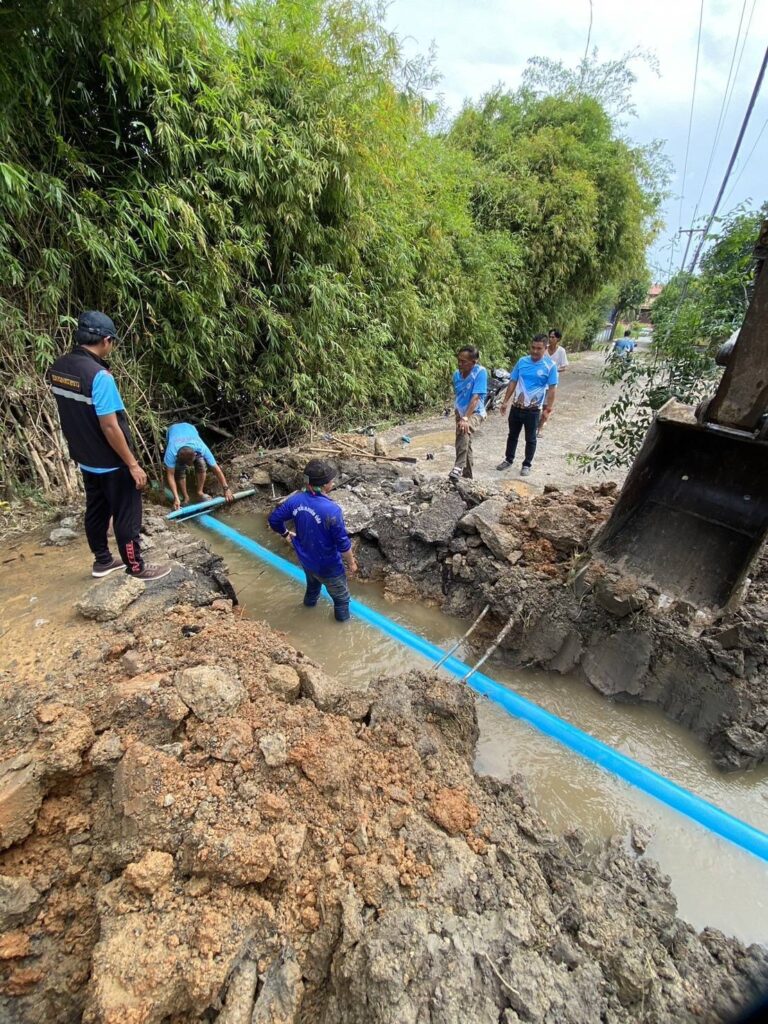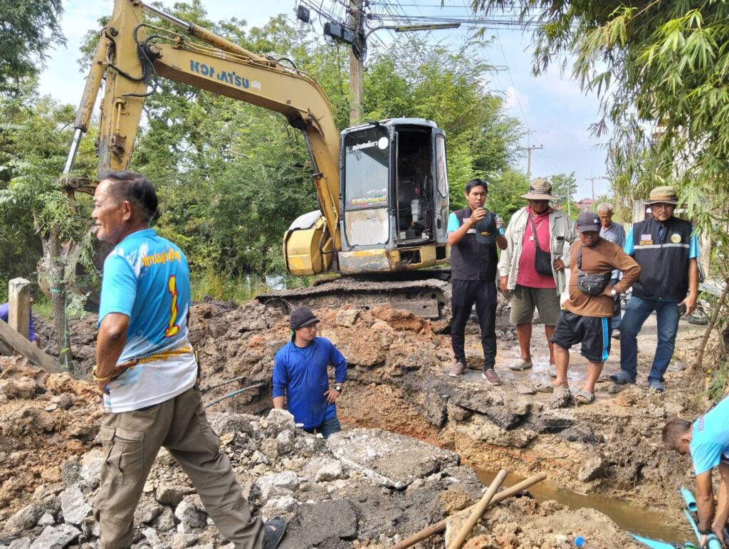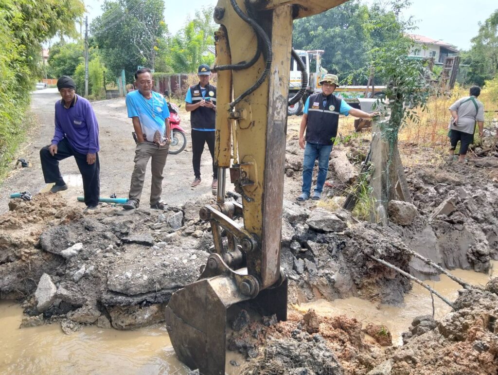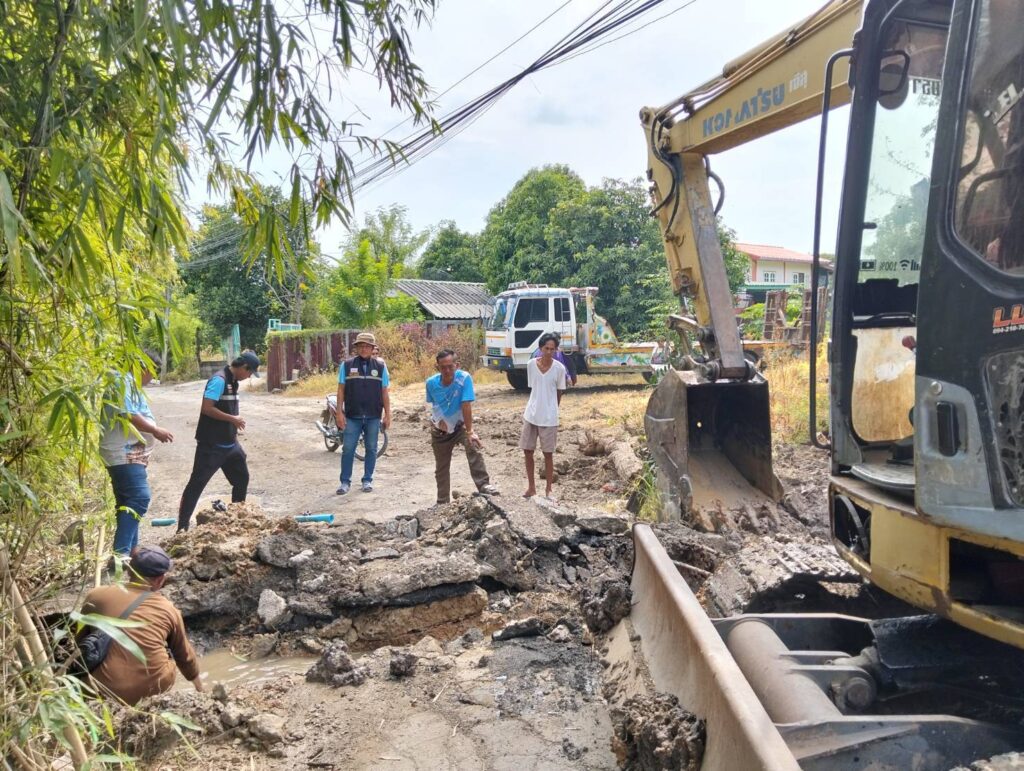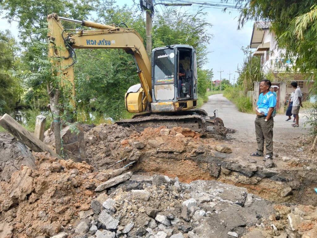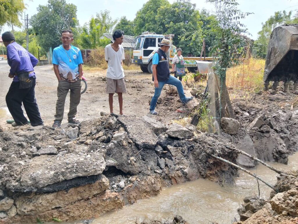 ได้พาทีมงานกองช่าง อบต. หนองทรายขาว พร้อมด้วยเครื่องจักร ลงพื้นที่บริเวณถนนสามแยกบ้านของ นายคำรณ ชินบุตร หมู่ที่ 4 บ้านสระเตยใหญ่ เพื่อทำการวาง “ท่อระบายน้ำ ให้กับผู้ที่ได้รับผลกระทบน้ำท่วมขังบริเวณนั้นจำนวนหลายหลัง ” ได้ดำเนินการวางท่อให้เสร็จเป็นที่เรียบร้อยแล้ว