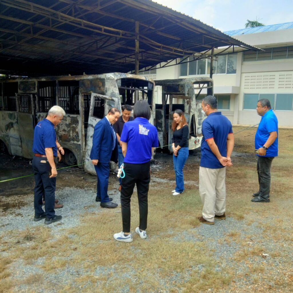 รถที่เกิดเหตุดังกล่าว เป็นรถประกอบใหม่ มีการจดทะเบียนอย่างถูกต้องตามกฎหมายและมีประกันภัยคุ้มครองครบถ้วน โดยอยู่ภายใต้การดูแลของบริษัทที่ได้รับสัมปทานให้บริการรถรับส่งแก่มหาวิทยาลัย ทั้งนี้ บริษัทประกันภัยได้เข้ามาตรวจสอบและยืนยันว่าจะรับผิดชอบค่าเสียหาย ซึ่งจะไม่กระทบต่อค่าใช้จ่ายของมหาวิทยาลัย และในประเด็นที่มีผู้กล่าวอ้างว่า เหตุการณ์ไฟไหม้นี้ เกิดจากการชาร์จและระบบควบคุมการจ่ายไฟฟ้าของแบตเตอรี่ ซึ่ง มทร.ธัญบุรี ให้ความสำคัญกับความปลอดภัยของทุกคน โดยจะเร่งตรวจสอบข้อเท็จจริงเกี่ยวกับสาเหตุการเกิดไฟไหม้จากเจ้าหน้าที่พิสูจน์หลักฐาน พร้อมเปิดโอกาสให้ทุกฝ่ายที่เกี่ยวข้องได้เข้ามาให้ข้อมูล