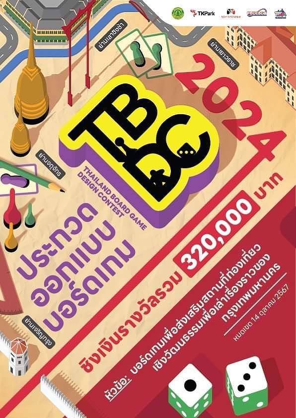 สำหรับโครงการ Thailand Board Game Design Contest 2024 (TBDC 2024) ครั้งที่ 1 ในหัวข้อ : บอร์ดเกมเพื่อส่งเสริมสถานที่ท่องเที่ยวเชิงวัฒนธรรมเพื่อเล่าเรื่องราวของกรุงเทพมหานคร นั้น เป็นการประกวดออกแบบบอร์ดเกม ชิงเงินรางวัลมูลค่ารวมกว่า 320,000 บาท โดยผู้สมัครต้องเลือกทำบอร์ดเกมจาก 1 ใน 4 ย่านของกรุงเทพมหานคร ซึ่งประกอบด้วยย่านเยาวราช, เสาชิงช้า, จตุจักร และเจริญกรุง นำเสนอผลงานในรูปแบบวิดีโอคลิปความยาวไม่เกิน 2 นาที สามารถสมัครได้ทั้งประเภททีม และในประเภทบุคคลทั่วไป โดยส่งผลงานเข้าประกวดในรอบคัดเลือกมาได้ที่ https://forms.gle/KHBbeoQvL2EtUfjW7 ตั้งแต่วันนี้ – วันที่ 14 ต.ค.67 ติดตามความเคลื่อนไหวการประกวดได้ที่ Facebook เพจ TBDC : Thailand Board Game Design Contest หรือสอบถามรายละเอียดเพิ่มเติม ได้ที่คุณบิว โทรศัพท์ 088-0043507 ได้ตั้งแต่วันนี้เป็นต้นไป