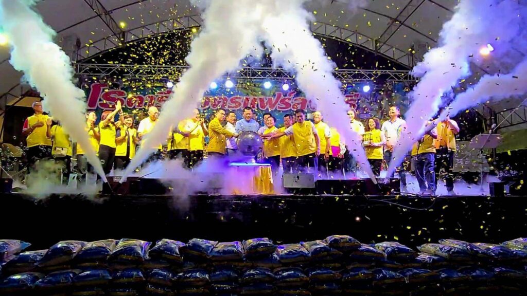 ซึ่งในวันเปิดงาน และ วันปิดงาน ยังมีการแจกคูปองริสแบนด์กระดาษ ให้แก่ผู้ร่วมงาน เพื่อรับข้าวสาร ฟรี ทุกละ 5 กิโลกรัม จำนวน 600 ถุง และสิ่งของต่างๆ จาก รองผู้ว่าราชการจังหวัดลพบุรี และสมาชิกสโมสรโรตารีพระราเมศวรลพบุรี เพื่อช่วยเหลือแบ่งเบาภาระค่าใช้จ่ายให้กับผู้ยากไร้ และผู้มีรายได้น้อย เป็นการช่วยเหลือสังคม ชุมชน และประชาชนที่มาเที่ยวชมงาน อีกด้วย