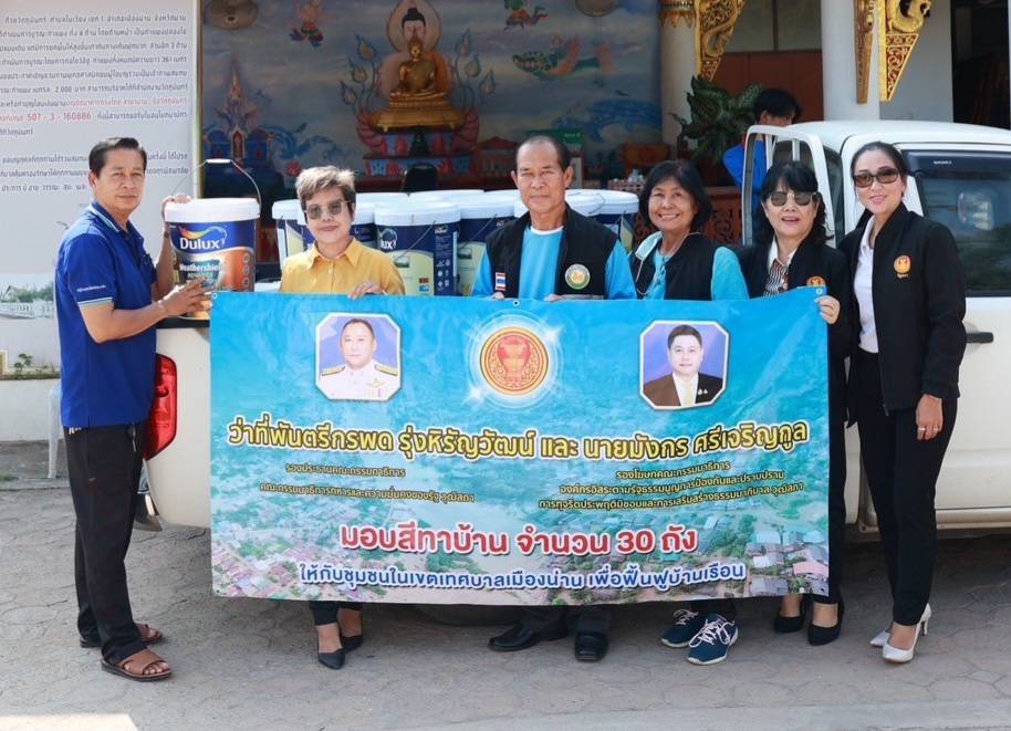 มอบสีทาบ้าน จำนวน 30 ถังให้กับชุมชนในเขตเทศบาลเมืองน่าน เพื่อฟื้นฟูบ้านเรือน