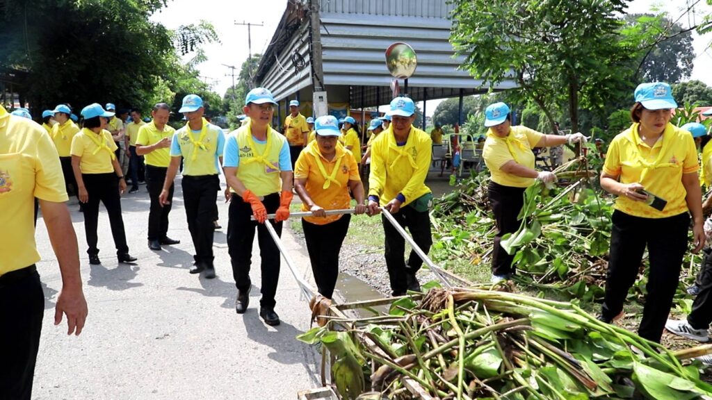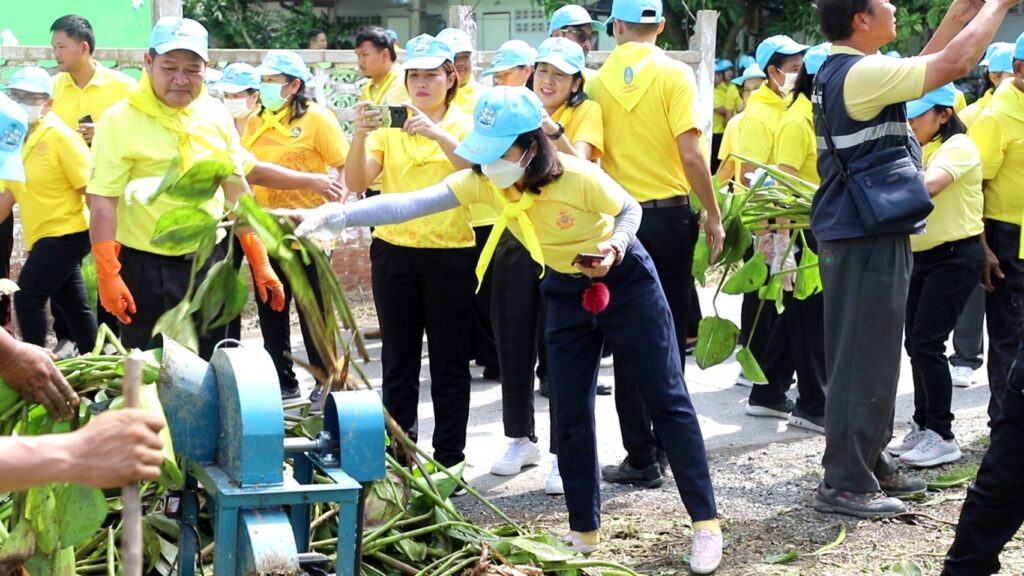 ที่บริเวณศาลาประจำหมู่บ้านริมแม่น้อย หมู่ที่ 4 ตำบลสิงห์ อำเภอบางระจัน จังหวัดสิงห์บุรี นายสุเมธ ธีรนิติ ผู้ว่าราชการจังหวัดสิงห์บุรี พร้อมด้วยรองผู้ว่าราชการจังหวัดสิงห์บุรี นายกเหล่ากาชาดจังหวัดสิงห์บุรี ผู้อำนวยการ กอ.รมน. จังหวัดสิงห์บุรี หัวหน้าส่วนราชการ ข้าราชการ และประชาชนจังหวัดสิงห์บุรี จำนวนประมาณ 400 คน ได้ร่วมกันจัดกิจกรรมจิตอาสาเทิดพระเกียรติพระบาทสมเด็จพระบรมชนกา ธิเบศร มหาภูมิพลอดุลยเดชมหาราช บรมนาถบพิตร เนื่องในวันนวมินทรมหาราชา 13 ตุลาคม 2567 โดยการทำความสะอาดแม่น้ำน้อย เก็บผักตบชวาในลำน้ำมาทำการสับ และหมักให้เป็นปุ๋ยหมัก ให้ข้าราชการในอำเภอค่ายบางระจันและประชาชนที่อยู่ใกล้เคียงได้ไปใช้เป็นปุ๋ยใส่พืชผักสวนครัวต่อยอดโครงการ “บ้านนี้มีรัก ปลูกพืชผักกินเอง” ตามที่จังหวัดสิงห์บุรีได้ส่งเสริมให้ประชาชนปลูกทุกบ้านเพื่อเป็นการลดรายจ่ายในครัวเรือน