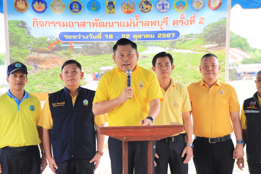 วันที่ 16 ตุลาคม 2567 เวลา 14.00 น. ที่ บริเวณหน้าประตูระบายน้ำโพธิ์เก้าต้น ตำบลโพธิ์เก้าต้น อำเภอเมืองลพบุรี นายปรัชญา เปปะตัง รองผู้ว่าราชการจังหวัดลพบุรีเป็นประธานเปิดกิจกรรมอาสาพัฒนาแม่น้ำลพบุรี ครั้งที่ 2 เพื่อเตรียมความพร้อมป้องกันและแก้ไขสถานการณ์อุทกภัยในพื้นที่อำเภอท่าวุ้ง และอำเภอเมืองลพบุรี โดยมี นายวิรพัฒน์ อ่อนสุระทุม หัวหน้าสำนักงานป้องกันและบรรเทาสาธารณภัยจังหวัดลพบุรี พร้อมด้วยหัวหน้าส่วนราชการ ผู้นำท้องที่ ผู้นำท้องถิ่น และหน่วยงานที่เกี่ยวข้องเข้าร่วมในกิจกรรมครั้งนี้ กว่า 100 คน