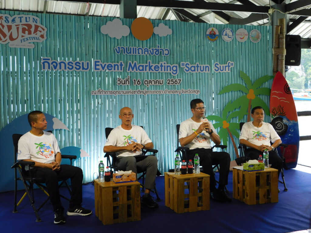 วันนี้ 16 ต.ค.2567 ที่อุทยานแห่งชาติหมู่เกาะเภตรา ต.ปากน้ำ อ.ละงู จ.สตูล นายคณิต คงช่วย รองผู้ว่าราชการจังหวัดสตูล พร้อมด้วย นายไพรัช สุขงาม ผู้อำนวยการ การท่องเที่ยวแห่งประเทศไทยสำนักงานสตูล นายสัมฤทธิ์ เลียงประสิทธิ์ นายก อบจ.สตูล และ นายบำรุงรัตน์ พลอยดำ หน.อุทยานแห่งชาติหมู่เกาะเภตรา ร่วมกันแถลงข่าวการจัดงาน “ SATUN SURF FESTIVAL” เพื่อประชาสัมพันธ์การจัดงาน ซึ่งกำหนดจัดขึ้นในวันที่ 18-20 ตุลาคม 67 ณ บริเวณหาดกาสิงห์ บ้านบ่อเจ็ดลูก ตำบลปากน้ำ อำเภอละงู จังหวัดสตูล