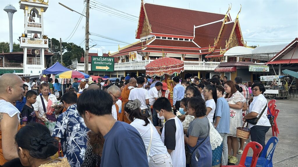 เนื่องในเทศกาลวันออกพรรษาซึ่งจัดขึ้นเป็นประจำทุกปีในวันแรม 1 ค่ำเดือน 11 ตามพุทธประวัติ โดยพุทธศาสนิกชนต่างนำข้าวสาร อาหารแห้ง และน้ำดื่ม ข้าวต้มหาง ข้าวทิพย์ มารอใส่บาตรอยู่ด้านล่าง ซึ่งในปีนี้ประชาชนที่มาร่วมทำบุญตักรบาตรในงานประเพณีตักบาตรเทโวโรหณะ ส่วนใหญ่จะมากันเป็นครอบครัวทั้งผู้ใหญ่ และผู้สูงอายุกันอย่างเนืองแน่นมากกว่าทุกปีที่ผ่านมา เพื่อร่วมอนุรักษ์ขนบธรรมเนียมประเพณีทำบุญออกพรรษา ที่จัดสืบทอดต่อกันมาอย่างยาวนาน