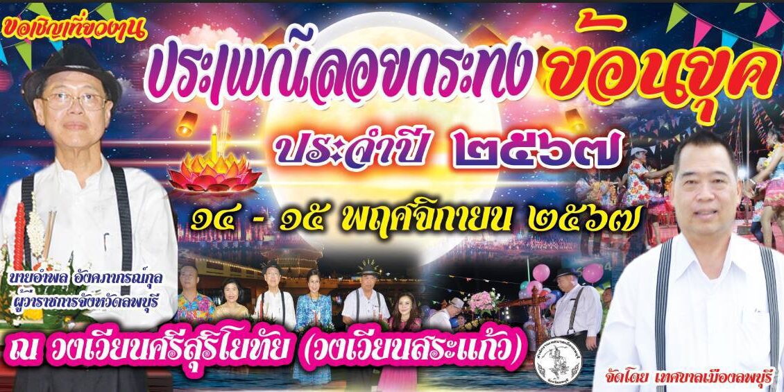 ว่า เทศบาลเมืองลพบุรี จัดงาน ‘ลอยกระทงย้อนยุค’ สืบสานมรดกทางวัฒนธรรมอันดีงาม กระตุ้นเศรษฐกิจและ