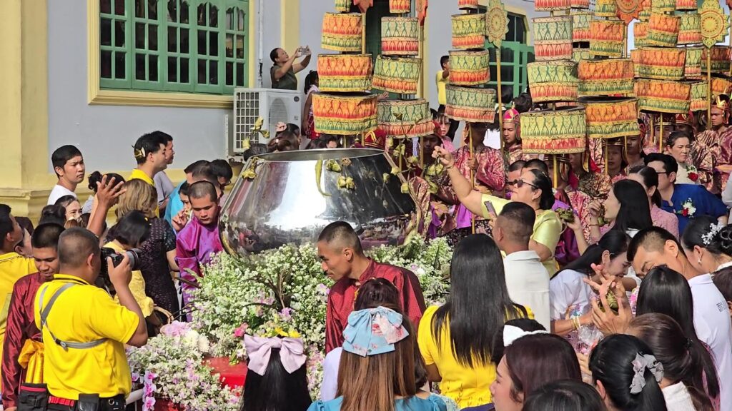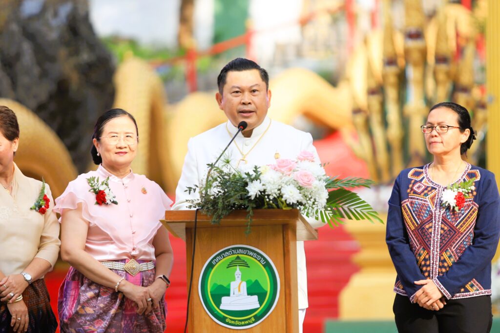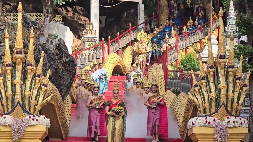 นาย ปรัชญา เปปะตัง รองผู้ว่าราชการจังหวัดลพบุรี เป็นประธานในการนำเหล่าพุทธศาสนิกชนประกอบพิธี “งานสืบสานวัฒนธรรมประเพณี “ตักบาตรข้าวต้มลูกโยน” แด่พระสงฆ์ที่เดินลงจากยอดเขา เพื่อถวายเป็นพุทธบูชา ภายใต้ชื่องาน “เขาพระงาม เทโวโรหณะ นมัสการหลวงพ่อใหญ่ ตักบาตรข้าวต้มลูกโยน ” เนื่องในเทศกาลวันออกพรรษา ประจำปี 2567 ณ วัดสิริจันทรนิมิตรวรวิหาร พระอารามหลวงชั้นตรี หรือวัดเขาพระงาม ตำบลเขาพระงาม อำเภอเมืองลพบุรี ซึ่งมีเหล่าพุทธศาสนิกชนชาวลพบุรี กว่า 3,000 คน ที่พร้อมใจแต่งกายด้วยผ้าไทย ร่วมกันทำบุญตักบาตรเทโวโรหณะ ด้วยวิธีการโยนข้าวต้มมัด แบบมีหาง ลงในบาตรขนาดใหญ่ โดยจัดรูปขบวนให้มีผู้แต่งกายเป็นนางฟ้า เทวดา พระอินทร์ เดินนำพระสงฆ์ ลงมาจากยอดเขา ตามบันไดนาค จำนวน 295 ขั้น ซึ่งเป็นสถานที่ประดิษฐานของพระพุทธปฏิภาคมัธยมพุทธกาล หรือหลวงพ่อใหญ่ ที่สร้างมา 112 ปี และเป็นที่เลื่อมใส่ศรัทธาของประชาชนทั่วไป