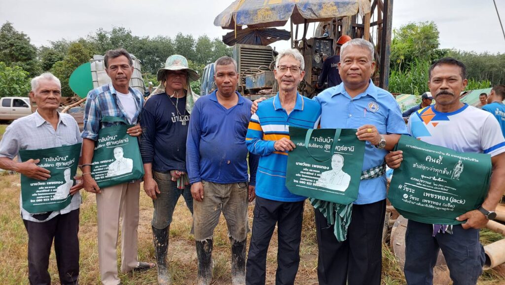 เมื่อเวลา 10.00 น.วันที่ 18 ตุลาคม 2567 ที่บริเวณขุดเจาะบ่อบาดาลเพื่อทำน้ำประปาหมู่บ้าน ม.1 ต.ทุ่งรัง อ.กาญจนดิษฐ์ จ.สุราษฎร์ธานี นายวัชระ เพชรทอง อดีต สส.พรรคประชาธิปัตย์ เดินทางไปถึงบริเวณที่ขุดบ่อบาดาล เพื่อให้กำลังใจเจ้าหน้าที่ และยังมอบเงินสนับสนุนเป็นค่าใช้จ่ายในการทำงานแก่ข้าราชการและคนงานกรมทรัพยากรน้ำบาดาล