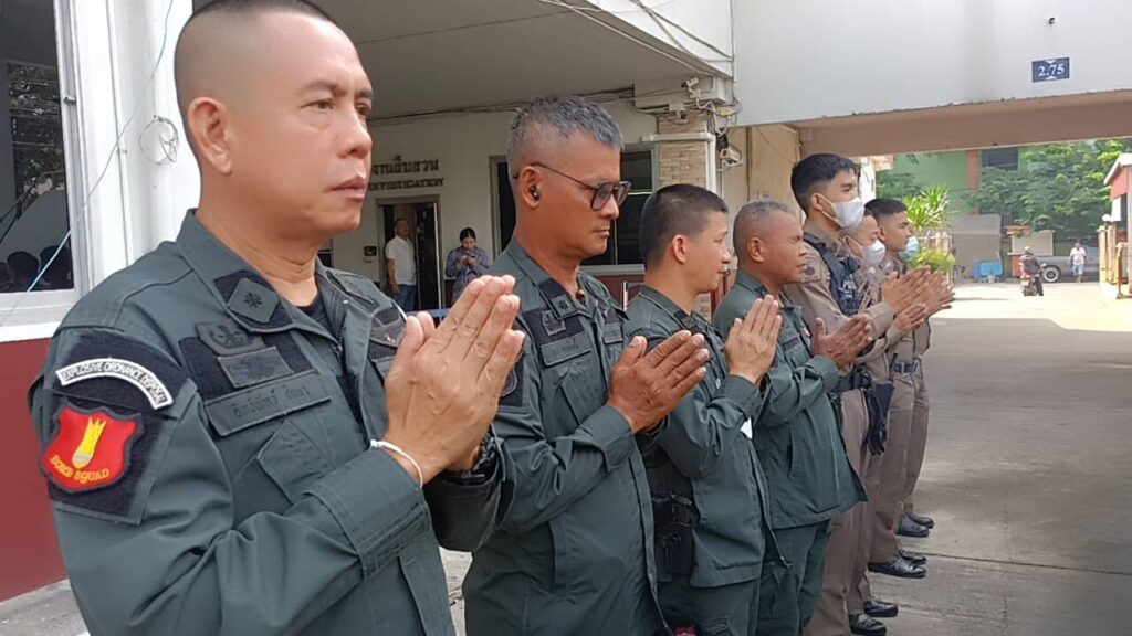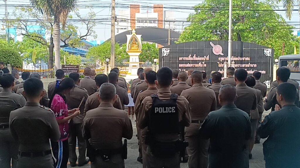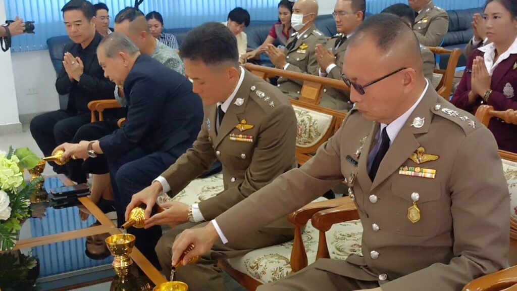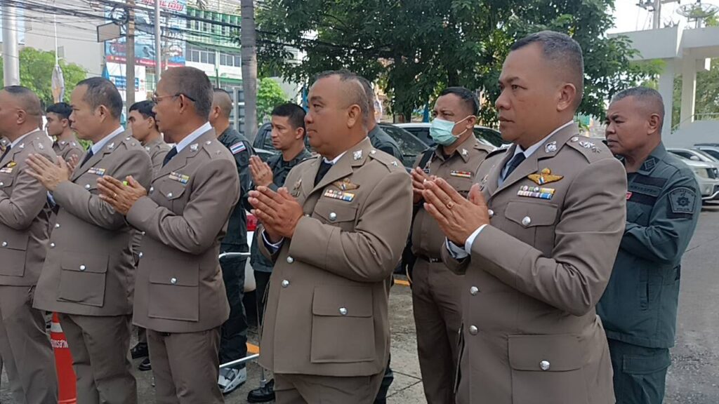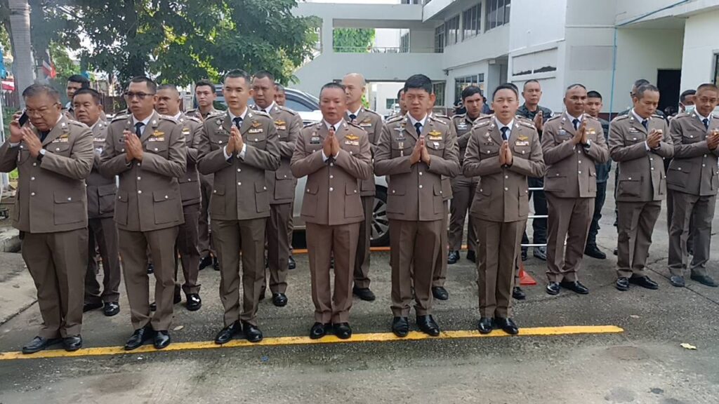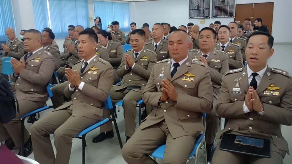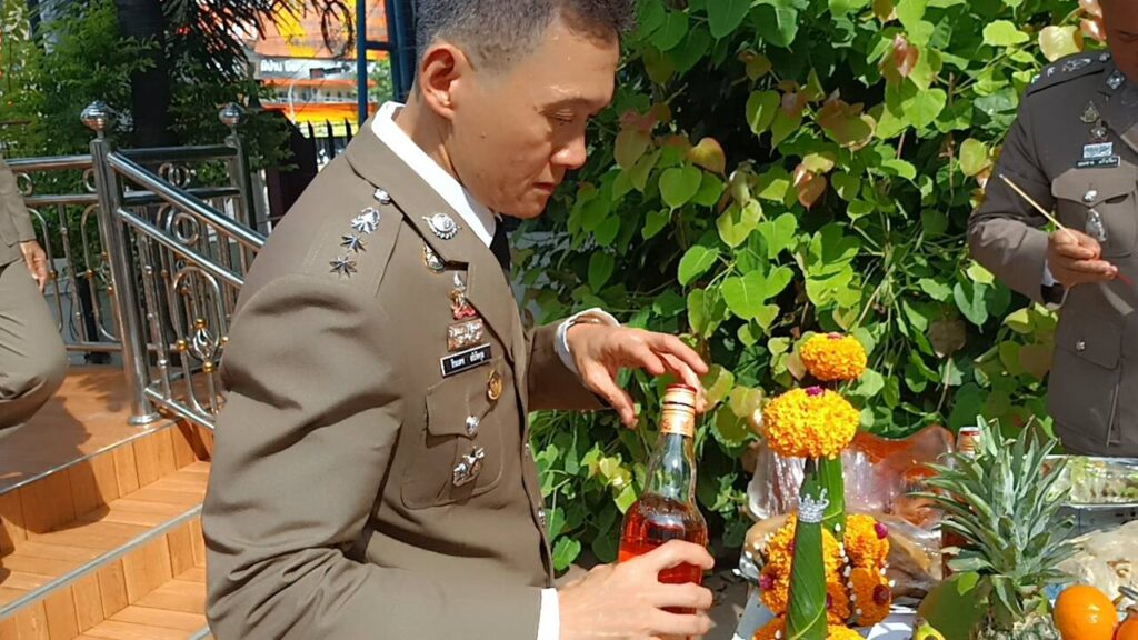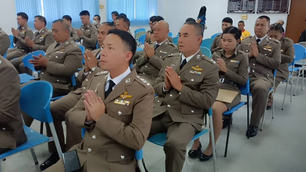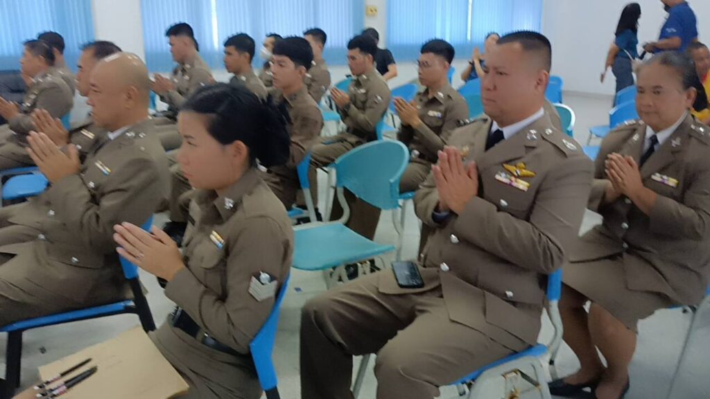 พ.ต.อ.ธีระเดช อธิภัคกุล รอง ผบก.ภ.จว.สมุทรสาคร พร้อมคณะข้าราชการตำรวจ ได้ร่วมสักการะพระพุทธวชิรปราการ และพระภูมิเจ้าที่ บริเวณด้านหน้าที่ทำการ จากนั้น ข้าราชการตำรวจ พร้อมด้วย คณะกรรมการ กต.ตร. และแม่บ้านตำรวจ ภ.จว.สมุทรสาคร ได้ร่วมกันประกอบพิธีสงฆ์ ณ ห้องประชุมชั้น 3 ภ.จว.สมุทรสาคร พร้อมกับถวายเครื่องไทย แด่พระภิกษุสงฆ์ วัดป้อมวิเชียรโชติการาม พระอารามหลวง