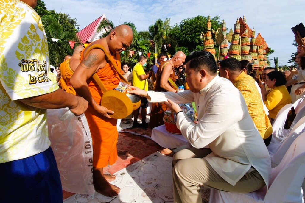 วันที่ 19 ตุลาคม 2567 เวลา 07.30 น. ณ วัดดงน้อย ตำบลกกโก อำเภอเมือง จังหวัดวัดลพบุรี พระครูจันทสิริธร “หลวงพ่อสารันต์” เจ้าอาวาสวัดดงน้อย ประธานฝ่ายสงฆ์ นายปรัชญา เปปะตัง รองผู้ว่าราชการจังหวัดลพบุรี เป็นประธานฝ่ายฆราวาส นำพุทธศาสนิกชนพร้อมใจร่วมทำบุญตักบาตรเทโววัดดงน้อย เนื่องในเทศกาลวันออกพรรษา ประจำปี พ.ศ.2567 ครั้งที่ 2 โดยมีนายสิทธิชัย หล่อประสงค์สุข สมาชิกสภาผู้แทนราษฎร เขต 1 ลพบุรี นายก่อพล ฮุ้นสกุล นายกเทศมนตรี เทศบาลตำบลกกโก หัวหน้าส่วนราชการ นายอำเภอ พุทธศาสนิกชนร่วมพิธีเป็นจำนวนมาก