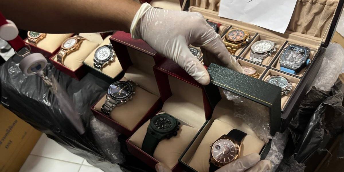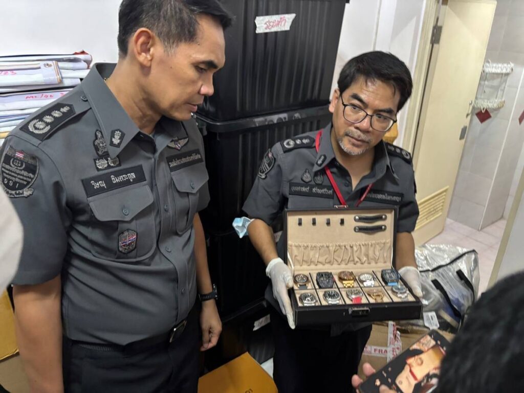 ผลการตรวจค้นเบื้องต้นพบทรัพย์สินเป็นนาฬิกาหรู จำนวนหลายสิบเรือน รวมทั้งสร้อยคอทองคำ พร้อมพระเลี่ยมทองที่มีมูลค่าอีกจำนวนหนึ่ง กระเป๋า รองเท้าแบรนด์เนม เบื้องต้นมูลค่าหลายสิบล้านบาท จึงได้ทำการตรวจยึดและซีนกล่องบรรจุของกลางร่วมกับเจ้าของสถานที่/ผู้นำการตรวจค้น นำส่งเก็บรักษาที่ส่วนควบคุมและเก็บรักษาของกลาง กองปฏิบัติการพิเศษ เพื่อนัดหมายผู้นำตรวจค้นมาตรวจนับสิ่งของโดยละเอียดต่อไป