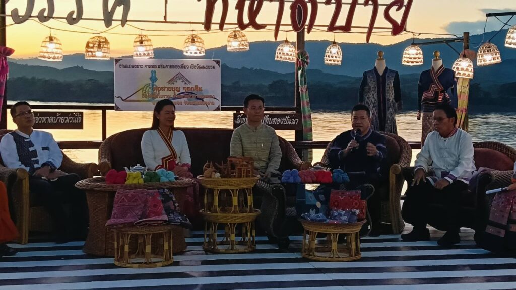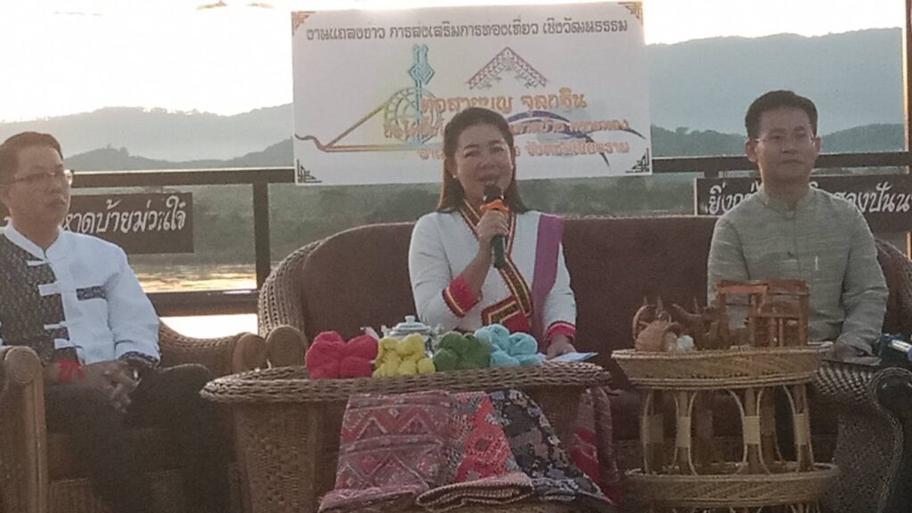 เมื่อวันที่ 22 ตุลาคม 2567 เวลาประมาณ 17.30 นนางอาทิตยาธร วันชัยธนวงศ์ นายกอบจ.เชียงรายพร้อมด้วยหลวงพ่อจตุรงค์โชติโกเจ้าอาวาสวัดบ้านหาดบ้าย นายวิสูตรบัวชุมผอการท่องเที่ยวแห่งประเทศไทย(ททท.)เชียงราย นายธีรภัทร์ ทองใบ ผออุทยานโยนกนาคพันธุ์ นายอุดม ปกป้องบวรกุล นายอำเภอเชียงของ และนายสมศักดิ์ ติยะธะ ประธานสภาวัฒนธรรม ตำบลริมโขง ร่วมแถลงข่าวเสวนาและประชาสัมพันธ์งานทอสายบุญจุนกฐินถิ่นไทยหรือโบราณบ้านหาดบ้าย โครงการส่งเสริมการท่องเที่ยวเชิงวัฒนธรรมบูรณาการพี่น้องท้องถิ่นรวมใจอำเภอเชียงของส่งเสริมการท่องเที่ยววิถีวัฒนธรรมพื้นบ้านพัฒนาการท่องเที่ยวให้เกิดความยั่งยืนสร้างงานสร้างอาชีพกระจายรายได้สู่ประชาชนนางอาทิตยาธร วันไชยวงศ์นายกอบจเชียงรายกล่าวว่าอบจเชียงรายมีนโยบายเชียงรายเที่ยวได้ทั้งปีมีดีทุกเดือนและเสน่ห์เชียงรายสถานที่ชาติพันธุ์วัฒนธรรมประเพณีซึ่งเป็นการเพิ่มมูลค่าการท่องเที่ยวของจังหวัดเชียงรายรักษาคุณค่าทางวัฒนธรรมส่งเสริมการท่องเที่ยววิถีวัฒนธรรมพื้นบ้านพัฒนาการท่องเที่ยวให้ยั่งยืนสร้างงานสร้างอาชีพกระจายรายได้สู่ประชาชนในพื้นที่อีกทั้งงานทอสายบุญจุนกฐินถิ่นไทลื้อโบราณถือเป็นกิจกรรมอนุรักษ์ฟื้นฟูเสริมสร้างความตระหนักรู้เห็นคุณค่าการต่อยอดมรดกทางประวัติศาสตร์