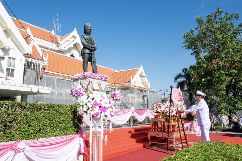 วันที่ 23 ตุลาคม 2567 ที่ลานอเนกประสงค์ศาลากลางจังหวัดปทุมธานี นายภาสกร บุญญลักษม์ ผู้ว่าราชการจังหวัดปทุมธานี นำข้าราชการและพสกนิกรชาวปทุมธานี วางพวงมาลาสักการะ เนื่องในวันคล้ายวันสวรรคตพระบาทสมเด็จพระจุลจอมเกล้าเจ้าอยู่หัว ประจำปี 2567 วันปิยมหาราช ณ พระบรมราชานุสรณ์พระบาทสมเด็จพระจุลจอมเกล้าเจ้าอยู่หัว