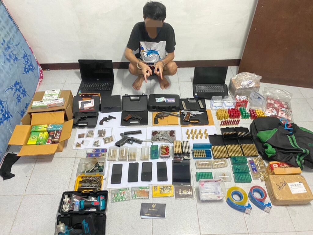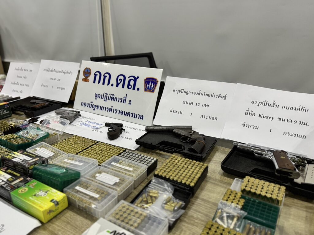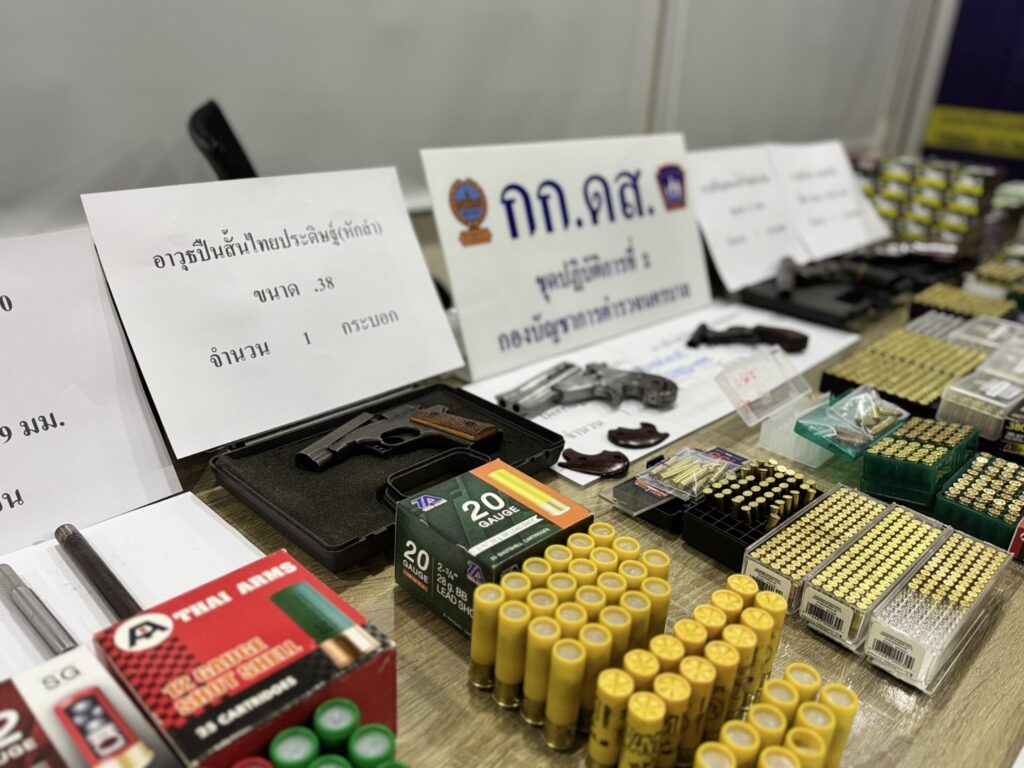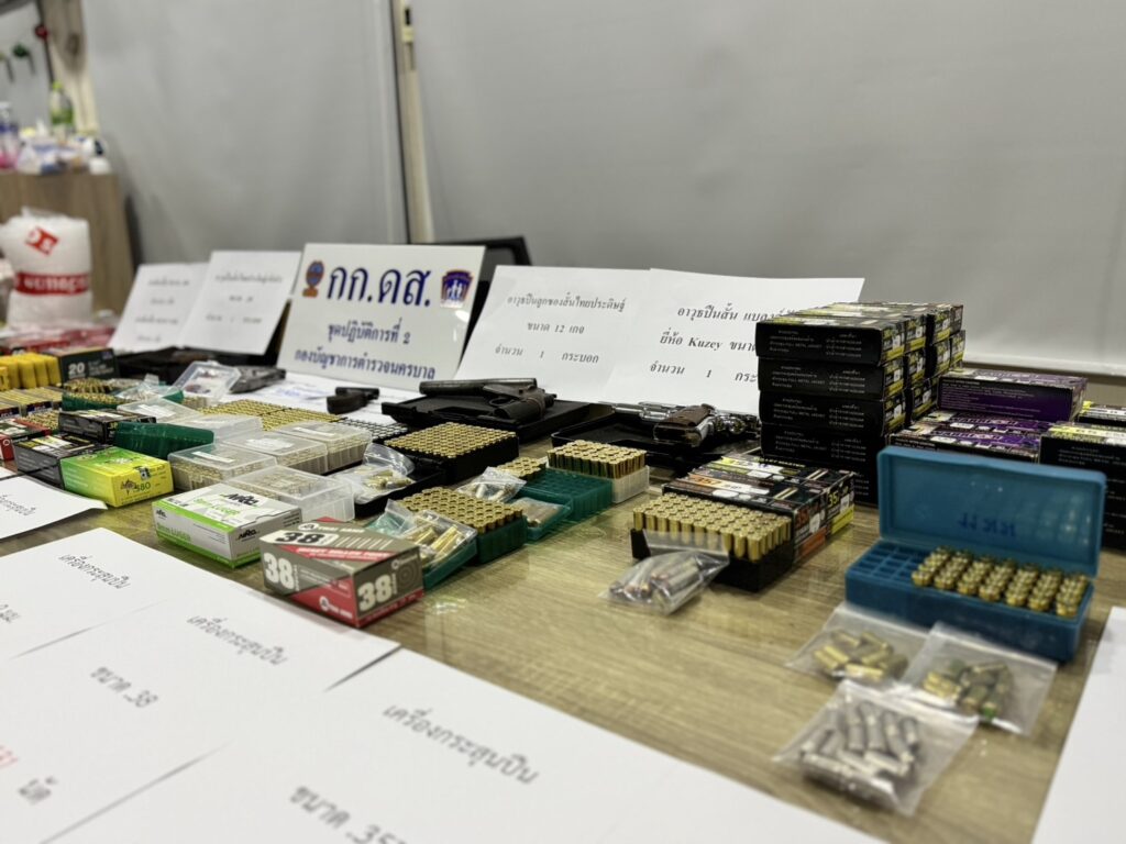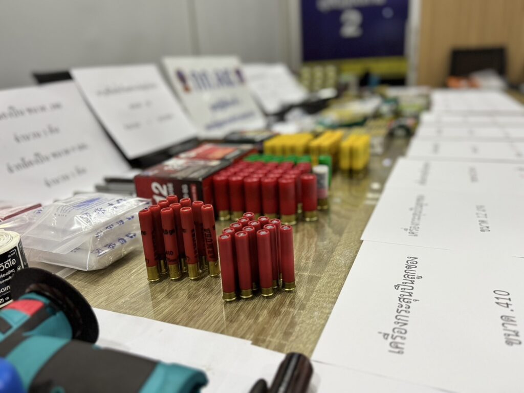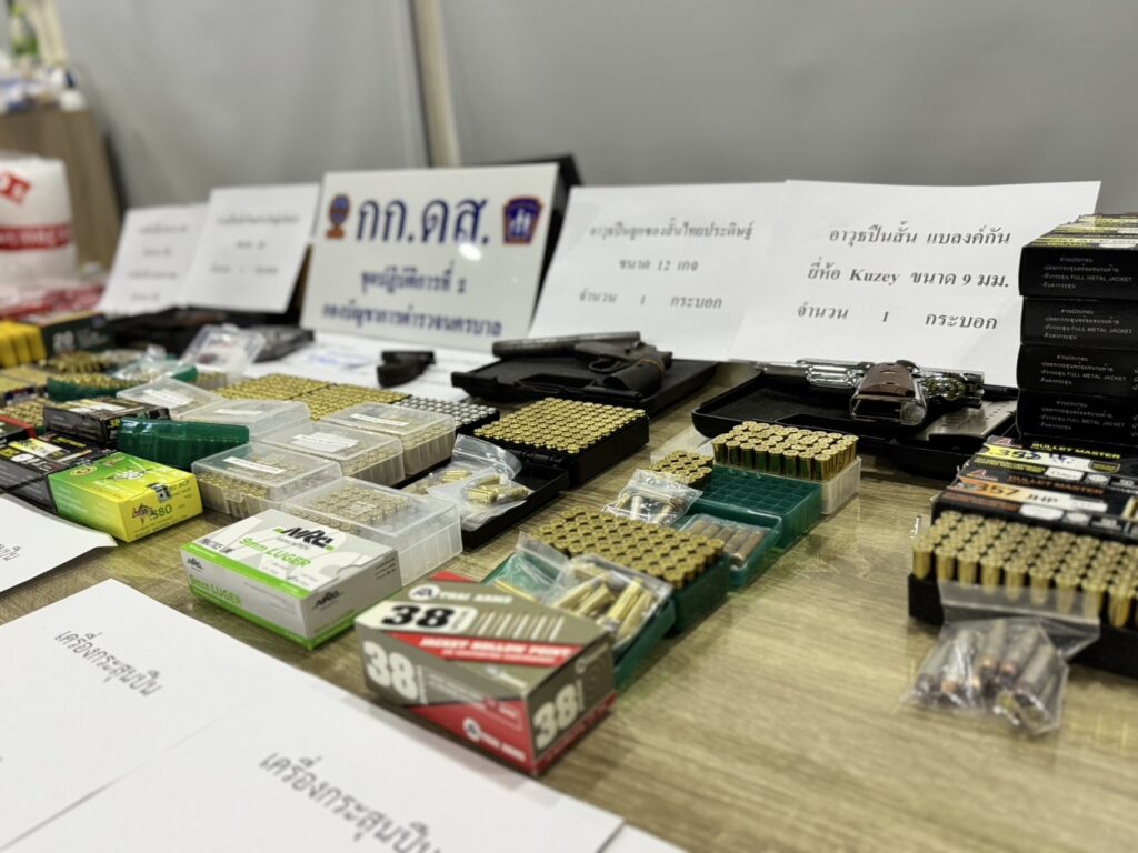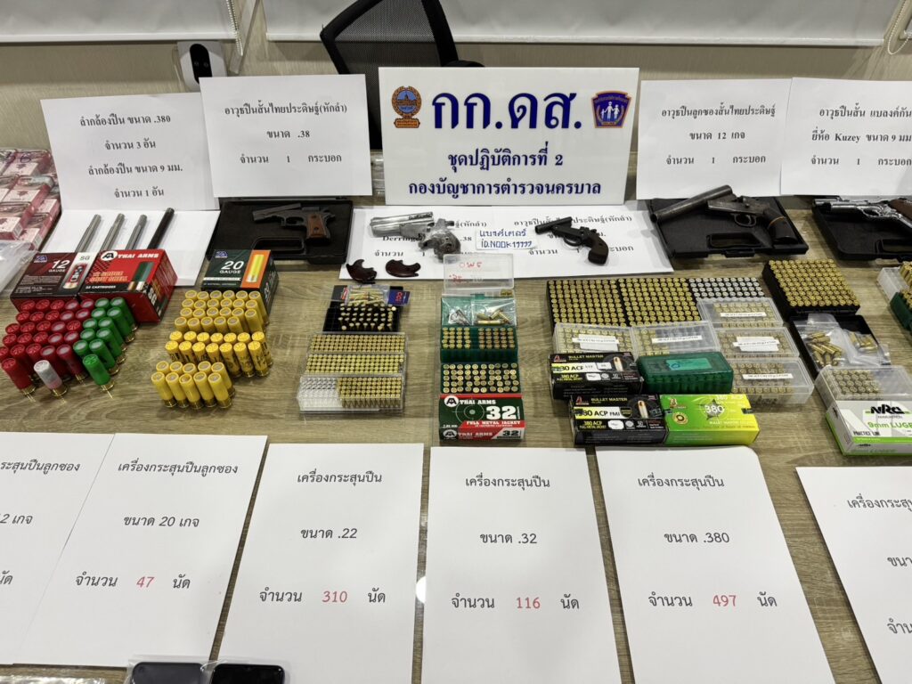 15กระสุนปืน ขนาด 380 AUTO (A USA) 200 นัด,กระสุนปืน ขนาด 380 ACP ยี่ห้อ THAIARMS 100 นัด,กระสุนปืน ขนาด 380 AUTO (PMC) 50 นัด,กระสุนปืน ขนาด 9 mm. LUGER (NRC) 100 นัด,กระสุนปืน ขนาด 9 mm. LUGER (PMC) 8 นัด,กระสุนปืน ขนาด 9 mm. ยี่ห้อ THAIARMS 5 นัด,กระสุนปืน ขนาด 32 AUTO (PMC) 55 นัด,กระสุนปืน ขนาด 32 AUTO (AP) 20 นัด,กระสุนปืน ขนาด 32 ACP ยี่ห้อ THAIARMS 25 นัด,กระสุนปืน หัวตัด ขนาด .38 SPL (A USA) 50 นัด,กระสุนปืน ขนาด .38 SPL (PMC) 40 นัด,กระสุนปืน ขนาด .22 LR ยี่ห้อ cci (หัวสีทองแดง)100 นัด,กระสุนปืน ขนาด .22 magnum ไม่มียี่ห้อ 40 นัด,กระสุนปืน ขนาด .22 ไม่มียี่ห้อ (หัวสีเหลือง) 97 นัด,กระสุนปืน ขนาด .22 LR ยี่ห้อ cci (หัวสีทองแดง) 63 นัด,กระสุนปืน ขนาด 9 mm. LUGER (NRC) (หัวสีดำ) 30 นัด,กระสุนปืน ขนาด 380 ACP ยี่ห้อ THAIARMS 40 นัด,กระสุนปืน ขนาด 380 AUTO (A USA) 17 นัด,กระสุนปืน ขนาด 380 AUTO (PMC) 40 นัด,กระสุนปืน ขนาด 32 AUTO (PMC) 14 นัด,กระสุนปืน ขนาด 32 S&W LONG (S&B) 2 นัด,กระสุนปืน หัวตัด ขนาด .38 SPL (A USA) 18 นัด,กระสุนปืน ขนาด .38 SPL (PMC) 10 นัด,กระสุนปืน ขนาด .38 SPL ยี่ห้อ THAIARMS 3 นัด,กระสุนปืน ขนาด .38 SPECIAL (S&B) (หัวสีดำ) 5 นัด,กระสุนปืน ขนาด .38 SPL (A USA) 5 นัด,กระสุนปืน ขนาด .357 MAG (A USA) 9 นัด,กระสุนปืน ขนาด .22 magnum ไม่มียี่ห้อ 10 นัด,กระสุนปืนลูกซอง ขนาด .410 นิ้ว ไม่มียี่ห้อ 13 นัด,กระสุนปืนลูกซอง ขนาด 20 เกจ สีเหลือง ไม่มียี่ห้อ 10 นัด,ลูกแบลงค์กัน 9 mm. PAK (BGTT) 8 นัด,ลูกแบลงค์กัน 9 mm. P.A. (OZK) 8 นัด,ลูกแบลงค์กันสีเงิน ไม่มียี่ห้อ 14 นัด,กระสุนปืน ขนาด .357 MAGNUM ยี่ห้อ BULLET MASTER 50 นัด,กระสุนปืน ขนาด .380 ACP ยี่ห้อ BULLET MASTER 50 นัด,กล่องลังพัสดุ สีน้ำตาล 25 กล่อง,พลาสติกกันกระแทก 1 ม้วน,อุปกรณ์เทปกาวสำหรับปิดกล่องพัสดุ 2 ชิ้น,เทปกาว ระบุ “กรุณาอัดวิดีโอ ในขณะกำลังเปิดกล่องพัสดุฯ” 1 ม้วน,ถุงพลาสติกซิปล็อค ขนาด 57 ซม. 30 ถุง,ถุงพลาสติกซิปล็อค ขนาด 913 ซม. 49 ถุง,กล่องบุหรี่เปล่า ยี่ห้อ TEXAS ใช้สำหรับซุกซ่อนกระสุนปืน สำหรับการจัดส่งให้กับลูกค้า 20 กล่อง,โทรศัพท์มือถือ ยี่ห้อ oppo Reno7 Pro 5G สีดำ IMEI1 : 860265053366918 , IMEI2 : 860265053366900 หมายเลขโทรศัพท์ sim1 065-4619637 เครือข่าย ais , sim2 086-4566370 เครือข่าย True 1 เครื่อง,โทรศัพท์มือถือ ยี่ห้อ SAMSUNG Galaxy A03 สีม่วง IMEI1 : 354076277801694 , IMEI2 : 354860827801