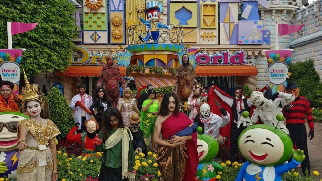 วันที่ 24 ตุลาคม 2567 ที่สวนสนุกดรีมเวิลด์ ตำบลบึงยี่โถ อำเภอธัญบุรี จังหวัดปทุมธานี ได้จัดกิจกรรมฮาโลวีนดรีมเวิลด์ พร้อมแก๊งแต่งผีมาร่วมเดินขบวนพาเหรดผีหรรษา ตั้งแต่วันนี้ถึงวันที่ 31 ตุลาคมนี้