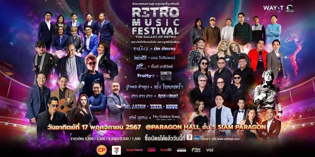 นับเป็นคอนเสิร์ต Retro แห่งปีที่ต้องห้ามพลาด สำหรับ Super Show “RETRO MUSIC FESTIVAL The Galaxy of Retro” จักรวาลความสุขของคนรุ่นใหญ่แต่หัวใจยังวัยรุ่น ที่กำลังจะเกิดขึ้นใน วันอาทิตย์ที่ 17 พฤศจิกายน 2567 ที่ พารากอน ฮอลล์ ชั้น 5 สยามพารากอน งานนี้ WAY-T Creation และ BRITE PANTHER จับมือพาทุกคนไปสนุกสุดเหวี่ยงกับเสียงเพลงแห่งวันวาน การรวมตัวศิลปินระดับตำนานกว่า 40 ชีวิต จัดเต็มโชว์กว่า 9 ชั่วโมง แสงสีเสียงเต็มพิกัด โปรดักชั่นสุดอลังการ สมกับเป็นเทศกาลดนตรี Retro ที่ยิ่งใหญ่ที่สุดในประเทศไทย! และยังเป็นปรากฏการณ์ครั้งพิเศษที่นักร้องตัวท็อปยุค 90’s โคจรมาเจอกับนักร้องชื่อดังยุค 80’s บนเวทีเดียวกันอีกด้วย