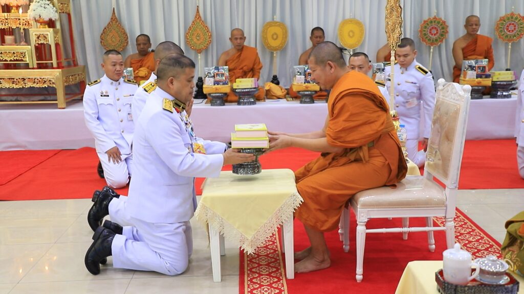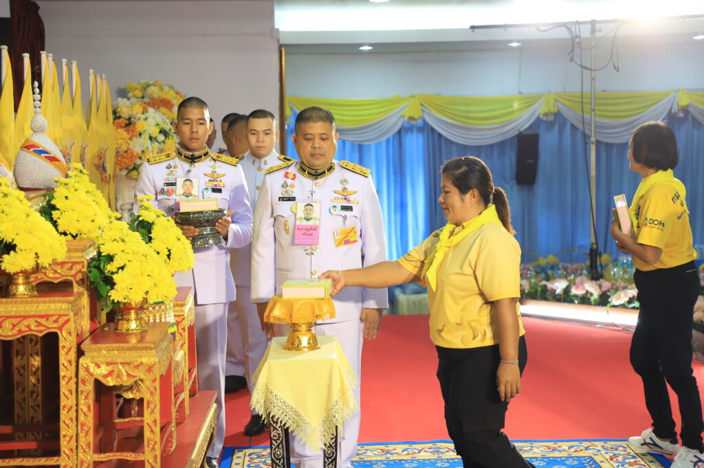 วันที่ 24 ตุลาคม 2567 เวลา 13.00 น. พระบาทสมเด็จพระเจ้าอยู่หัว ทรงพระกรุณาโปรดเกล้าฯ ให้ พ.อ.บุญสิทธิ์ ศรีพงษ์ ประจำสำนักพระราชวังพิเศษระดับ 9 เชิญชุดหนังสือธรรมนาวา “วัง” จำนวน 400 เล่ม น้ำปานะ 2,000 แก้ว อาหารพระราชทาน 2,000 ชุด ถวายแด่พระสงฆ์ และส่วนราชการ และนักเรียนนักศึกษาในพื้นที่อำเภอเมืองลพบุรี จังหวัดลพบุรี ณ ห้องประชุมวิทยาลัยเทคนิคลพบุรี โดยมี พระกิตติญาณเมธี เจ้าอาวาสวัดกลาง. เจ้าคณะอำเภอเมืองลพบุรี (ธ) และพระครูสิริจริยาภรณ์ เจ้าคณะอำเภอเมืองลพบุรี เจ้าอาวาสวัดเสาธงทอง พระอารามหลวง เป็นประธานฝ่ายสงฆ์ พร้อมด้วยคณะสงฆ์จังหวัดลพบุรี นายอำพล อังคภากรณ์กุล ผู้ว่าราชการจังหวัดลพบุรี ส่วนราชการ ผู้บริหารสถานศึกษา คณะครูอาจารย์ นักเรียนนักศึกษา และจิตอาสาพระราชทานเข้าร่วมพิธีในการนี้ พระเมธีวชิรดิลก ผู้ช่วยเจ้าอาวาสวัดชูจิตธรรมาราม พระอารามหลวง รักษาการเจ้าอาวาสวัดป่าศรีอุทุมพร จังหวัดสระบุรี ได้บรรยายพิเศษในการเผยแพร่พระรัตนตรัยโดยใช้หลักธรรมพระราชทาน ธรรมนาวา “วัง” แก่คณะสงฆ์ และส่วนราชการ ผู้บริหารสถานศึกษา คณะครูอาจารย์ นักเรียนนักศึกษาภายในงานอีกด้วย