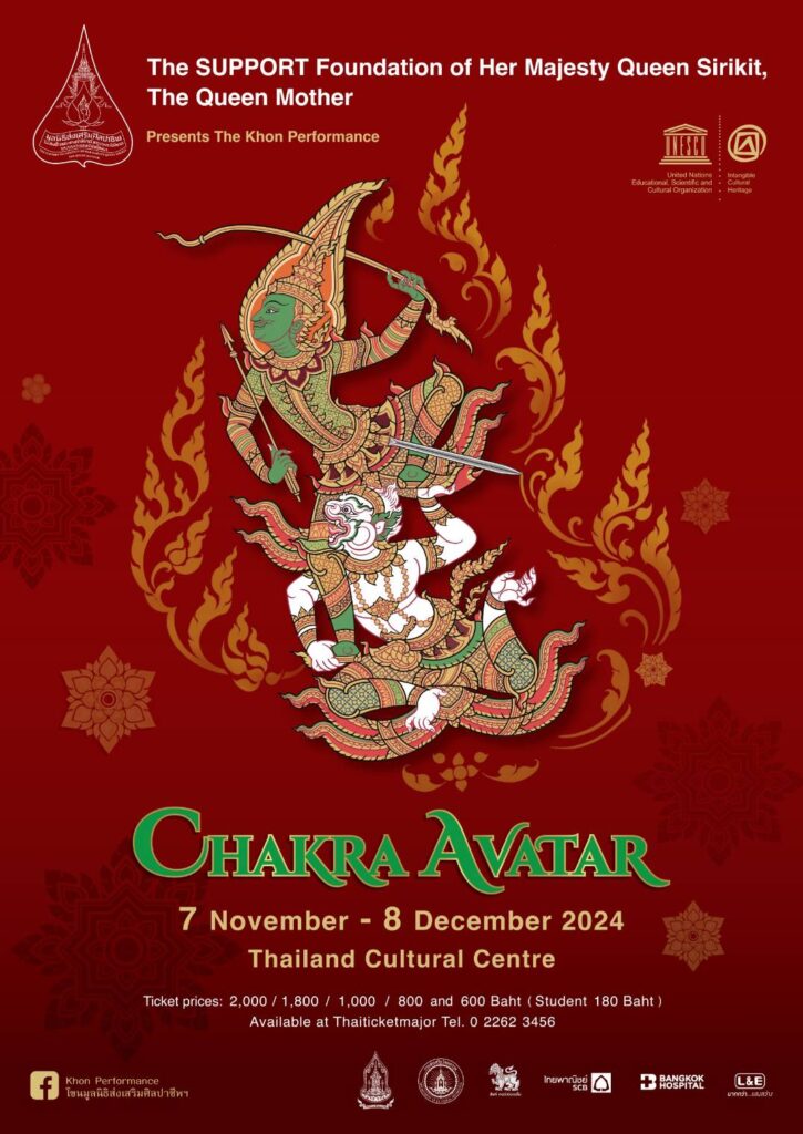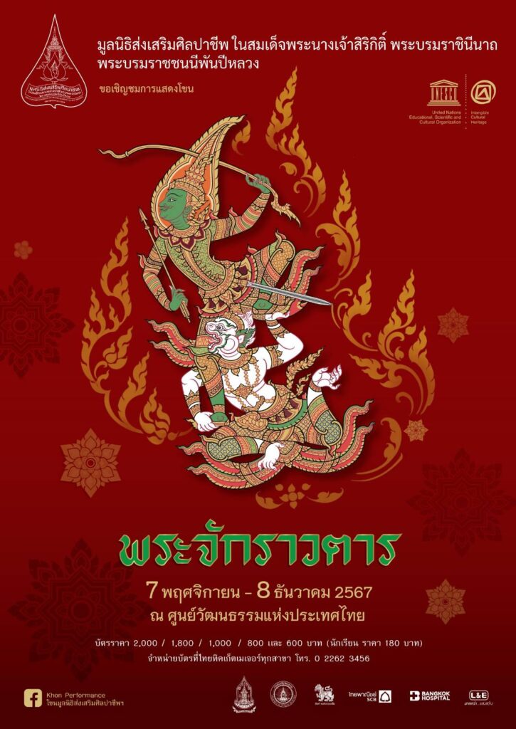 มูลนิธิส่งเสริมศิลปาชีพ ในสมเด็จพระนางเจ้าสิริกิติ์ พระบรมราชินีนาถ พระบรมราชชนนีพันปีหลวง มีกำหนดจัดการแสดงโขนมูลนิธิส่งเสริมศิลปาชีพฯ เรื่องรามเกียรติ์ ตอน “พระจักราวตาร” ขึ้น ในระหว่างวันที่ 7 พฤศจิกายน – วันที่ 8 ธันวาคม 2567 ณ หอประชุมใหญ่ ศูนย์วัฒนธรรมแห่งประเทศไทย สำหรับปี 2567 นี้ นับเป็น ปีมหามงคลของปวงชนชาวไทยอีกวาระหนึ่ง เพื่อเฉลิมฉลอง 2 โอกาสมหามงคลของปวงชนชาวไทย ได้แก่ เฉลิมพระเกียรติสมเด็จพระนางเจ้าสิริกิติ์ พระบรมราชินีนาถ พระบรมราชชนนีพันปีหลวง เนื่องในโอกาสมหามงคลเฉลิมพระชนมพรรษา 92 พรรษา 12 สิงหาคม 2567 และเฉลิมพระเกียรติพระบาทสมเด็จพระเจ้าอยู่หัว เนื่องในโอกาสมหามงคล เฉลิมพระชนมพรรษา 6 รอบ 28 กรกฎาคม 2567 มูลนิธิส่งเสริมศิลปาชีพฯ จึงร่วมเฉลิมฉลองโอกาสมหามงคลนี้ คัดเลือกตอน “พระจักราวตาร” อันเป็นตอนที่แสดงกฤษฎาภินิหารของพระจักราหรือพระนารายณ์ ที่อวตารลงมาเป็นพระราม โอรสของท้าวทศรถ กษัตริย์แห่งกรุงอโยธยาเพื่อปราบฝ่ายอธรรม เปรียบประดุจพระราชวงศ์จักรีที่ผดุงความสุขความสงบให้กับพสกนิกรชาวไทยตลอดมา
