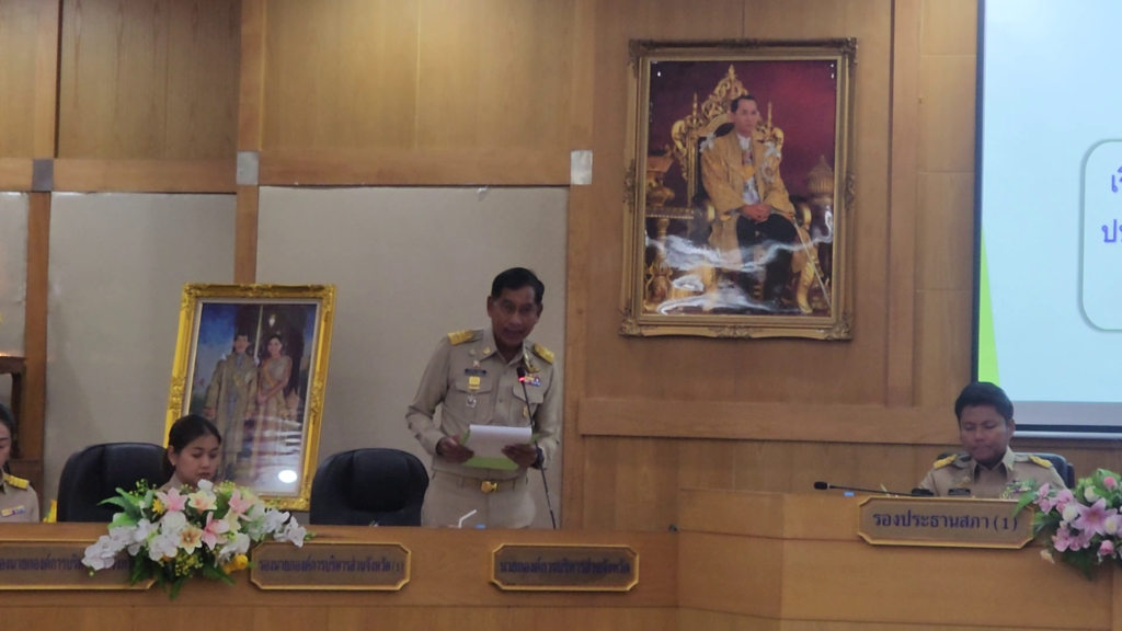 วันที่ 25 ตุลาคม 2567 ที่องค์การบริหารส่วนจังหวัดปทุมธานี ตำบลบ้านฉาง อำเภอเมืองปทุมธานี จังหวัดปทุมธานี ประชาชนเดินทางมาแสดงความยินดี พลตำรวจโทคำรณวิทย์ ธูปกระจ่าง นายกองค์การบริหารส่วนจังหวัดปทุมธานี แถลงนโยบายในการประชุมสภาองค์การบริหารส่วนจังหวัดปทุมธานี สมัยวิสามัญ สมัยที่สอง ประจำปี 2567 โดยมีคณะผู้บริหารองค์กรต่างๆ ประชาชนร่วมแสดงความยินดีในการเข้ารับตำแหน่งนายกองค์การบริหารส่วนจังหวัดปทุมธานี สมัยที่ 2