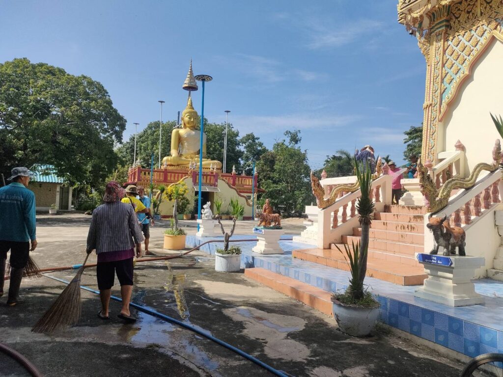 ได้นำรถบรรทุกน้ำขององค์การบริหารส่วนตำบลหนองทรายขาว ลงพื้นที่วัดบ้านมะขามเฒ่า พร้อมสมาชิก อบต.หนองทรายขาว หมู่ที่ 1 หมู่ที่ 2 บ้านมะขามเฒ่า พร้อมด้วยเจ้าหน้าที่ อบต.หนองทรายขาว, และผู้ใหญ่บ้านหมู่ที่ 1 หมู่ที่ 2 บ้านมะขามเฒ่า พร้อมด้วยชาวบ้านมะขามเฒ่า ที่ได้ร่วมมือกันทำความสะอาดล้างพื้นพัฒนาบริเวณลานวัดบ้านมะขามเฒ่า เพื่อเตรียมงานบุญกฐินประจำปี 67 ในวันพรุ่งนี้