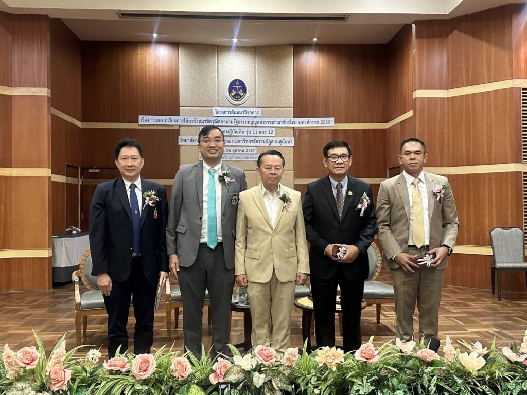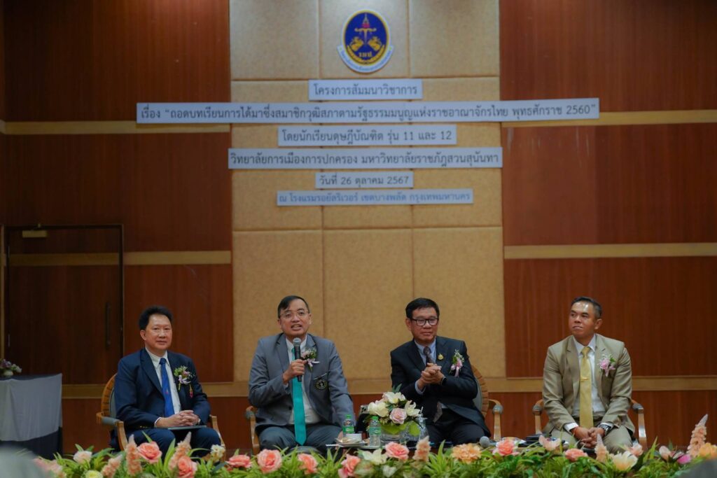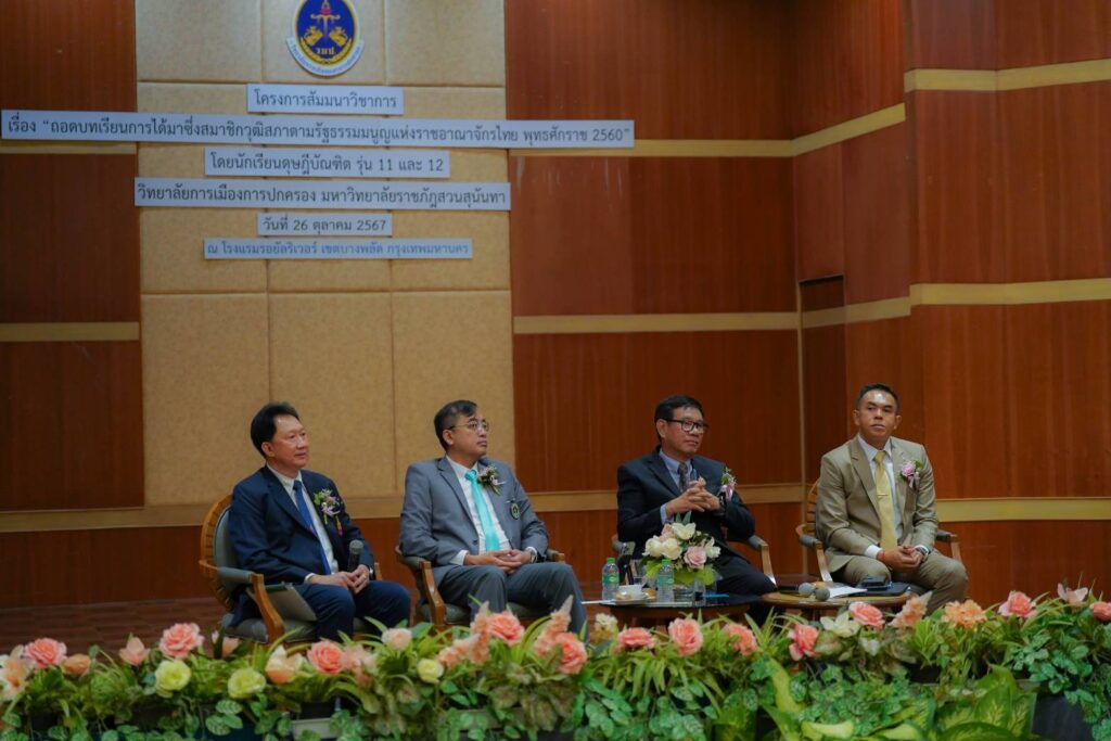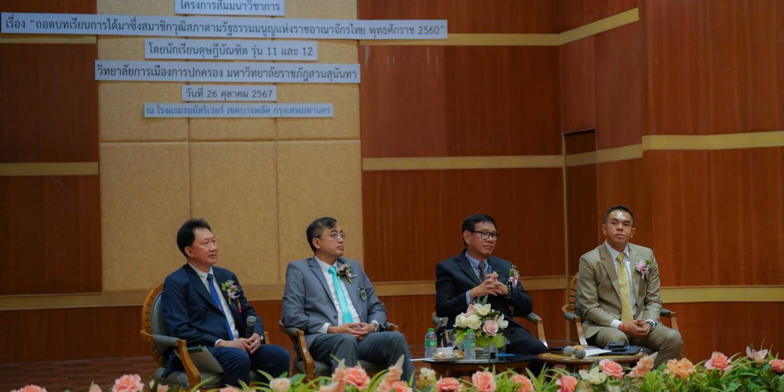 เมื่อวันเสาร์ที่ 26 ตุลาคม 2567 พลตำรวจโท ดร. วันไชย เอกพรพิชญ์ สมาชิกวุฒิสภา กรรมาธิการคมนาคม (รองประธานคนที่ 1) และประธานที่ปรึกษากรรมาธิการกฎหมายและกระบวนการยุติธรรม ได้ร่วมเป็นวิทยากรในโครงการ ” สัมนาเชิงวิชาการ เรื่อง ถอดบทเรียนการได้มาซึ่งสมาชิกวุฒิสภา ตามรัฐธรรมนูญแห่งราชอาณาจักรไทย พทธศักราช 2560 “ โดยมีผู้ช่วยศาสตราจารย์พิเศษ พลตำรวจโท ดร.สัณฐาน ชยนนท์ คณบดีวิทยาลัยการเมืองและการปกครอง มหาวิทยาลัยราชภัฏสวนสุนันทา เป็นประธาน ณ โรงแรมรอยัล รีเวอร์ ห้องภาณุมาศ ชั้น 10