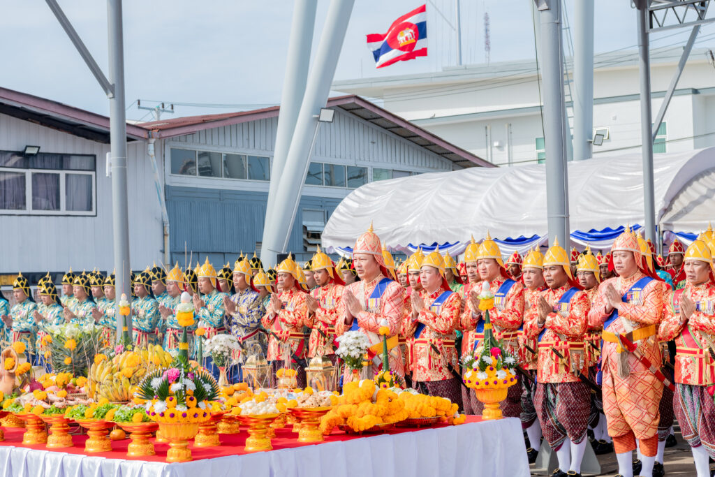 โดยในช่วงเช้ากองทัพเรือได้จัดให้มีพิธีบวงสรวงพระภูมิเจ้าที่ในพื้นที่ต่างๆ โดยในส่วนของพิธีเซ่นไหว้แม่ย่านางเรือพระราชพิธี ได้จัดขึ้นในพื้นที่อู่ทหารเรือธนบุรี กรมอู่ทหารเรือ ซึ่งเป็นพื้นที่จอดเรือพระที่นั่ง และเรือรูปสัตว์