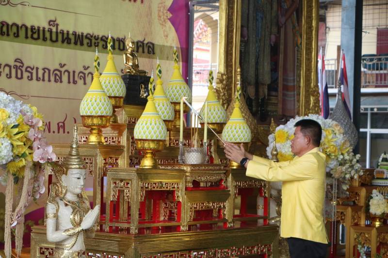 เมื่อวันที่ ๒๘ ตุลาคม ๒๕๖๗ ว่าที่ร้อยตรี ทรงพล แป้นแก้ว รองผู้ว่าราชการจังหวัดลพบุรี เป็นประธานพิธีเจริญพระพุทธมนต์เฉลิมพระเกียรติ ถวายพระพรชัยมงคลแด่ พระบาทสมเด็จพระเจ้าอยู่หัว เนื่องในโอกาสมหามงคลเฉลิมพระชนมพรรษา ๖ รอบ ๒๘ กรกฎาคม ๒๕๖๗ ประจำปีพุทธศักราช ๒๕๖๗ ครั้งที่ ๑๐ ณ วัดสำราญ ต.โพธิ์เก้าต้น อ.เมืองลพบุรี จ.ลพบุรี โดย นายจำเริญ สละชีพ นายกเทศมนตรีเมืองลพบุรี มอบให้ นายสันธนะ บัวชาติ รองนายกเทศมนตรีเมืองลพบุรี นางสาวมยุรา สุทธิพิบูลย์ รก.ปลัดเทศบาลเมืองลพบุรี เข้าร่วมในพิธีเจริญพระพุทธมนต์เฉลิมพระเกียรติ ถวายพระพรชัยมงคลแด่ พระบาทสมเด็จพระเจ้าอยู่หัว เนื่องในโอกาสมหามงคลเฉลิมพระชนมพรรษา ๖ รอบ ๒๘ กรกฎาคม ๒๕๖๗ ประจำปีพุทธศักราช ๒๕๖๗ พร้อมด้วยข้าราชการ พ่อค้า ประชาชน พุทธศาสนิกชน และแขกผู้มีเกียรติ จากนั้น ว่าที่ร้อยตรี ทรงพล แป้นแก้ว รองผู้ว่าราชการจังหวัดลพบุรี ประธานพิธีจุดเทียนธูป เครื่องนมัสการพระรัตนตรัย / เปิดกรวยกระทงดอกไม้ธูปเทียนแพ เบื้องหน้าพระบรมฉายาลักษณ์ สมเด็จพระนางเจ้าสิริกิติ์ พระบรมราชินีนาถ พระบรมราชชนนีพันปีหลวง / เปิดกรวยกระทงดอกไม้ธูปเทียนแพ เบื้องหน้าพระบรมฉายาลักษณ์ พระบาทสมเด็จพระวชิรเกล้าเจ้าอยู่หัว และ สมเด็จพระนางเจ้าฯ พระบรมราชินี / พระครูสิริจริยาภรณ์ เจ้าคณะอำเภอเมืองลพบุรี เจ้าอาวาสวัดเสาธงทอง ประธานสงฆ์ให้ศีล / เจริญพระพุทธมนต์ สวดประกาศพระปริตร นำเจริญจิตตภาวนา / เสร็จพิธี