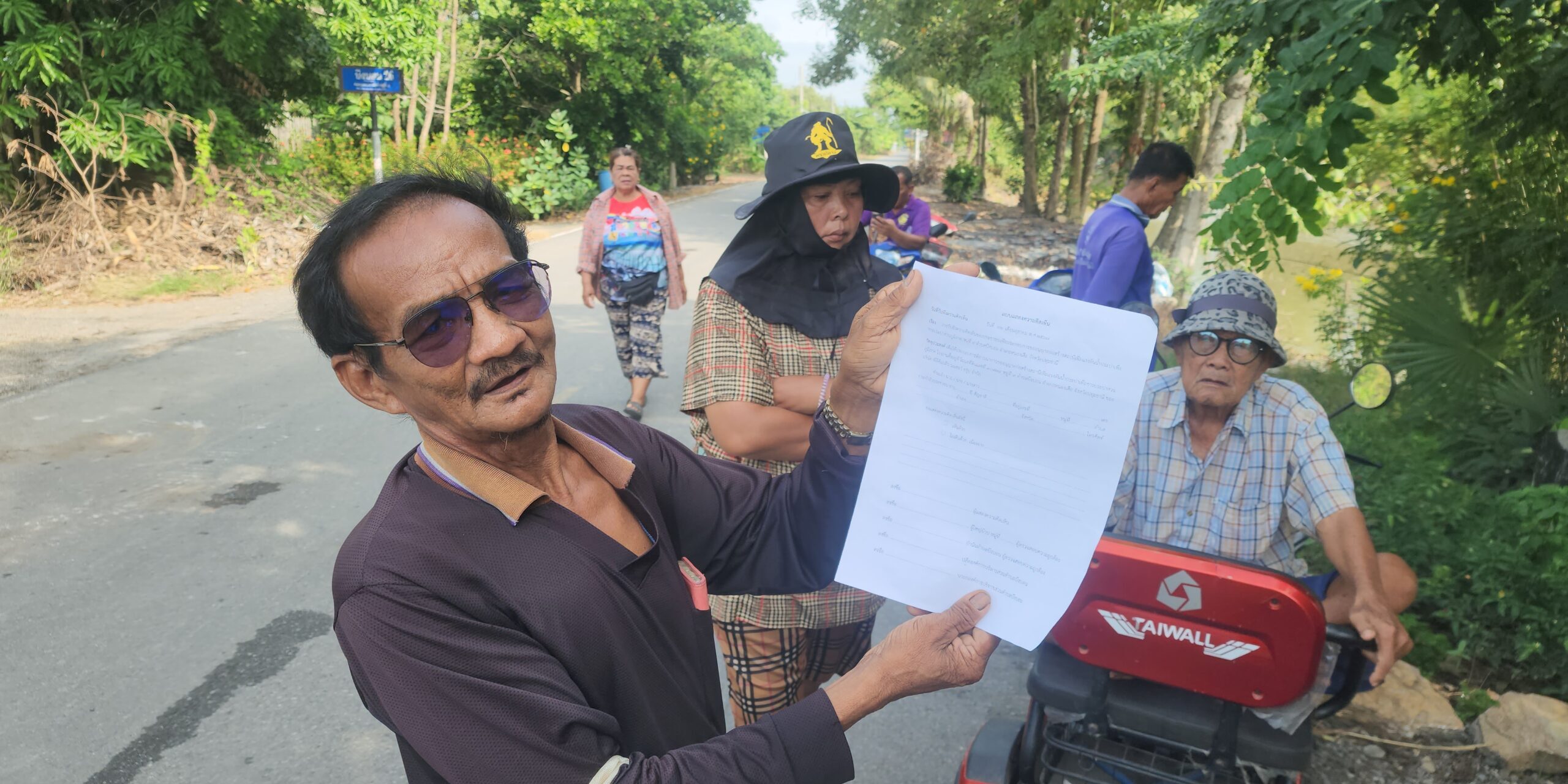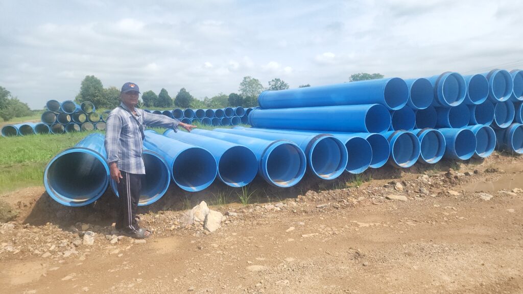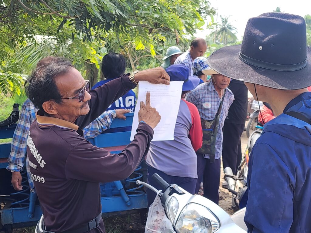 ทางด้าน นายชูพงษ์ พงศ์พันธุ์สถาพร ผู้ประสานงานของบริษัทเอกชน กล่าวว่า ผมในนามบริษัทฯได้มาพบประชาชนในพื้นที่ที่มีความกังวลจากการวางท่อน้ำประปา จากที่ได้พูดคุยทรายว่าชาวบ้านอยากให้เราฝังท่อลึกลงไป 3 เมตรจากผิวถนน เพื่อชาวบ้านเองจะได้ไม่กระทบกับแนวท่อ เพราะประชาชนที่มีการชักน้ำจากคลองเข้านา ในส่วนของท่อเดิมของชาวบ้านที่วางไว้อยู่แล้ว หากแตกชำรุดเสียหายจากบริษัทฯที่ขุดวางท่อประปา ทางบริษัทจะรับผิดชอบซ่อมแซม นอกจากนี้ชาวบ้านอยากจะให้บริษัทพิจารณาปรับเป็นท่อซีแพคได้หรือไม่ ทางผมจะรับเรื่องไว้ก่อนเพื่อเข้าที่ประชุมอีกที และหลังจากขุดวางท่อเรียบร้อยแล้วเราจะปรับถนนให้เหมือนเดิม วันนี้จึงได้ลงพื้นที่สำรวจชี้แนวท่อประปาและพยายามวางท่อประปาไม่ให้กระทบกับพี่น้องประชาชนในพื้นที่ เพราะชาวบ้านมีความกังวลหลังจากที่มีคนไปพูกปากต่อปากวางจะวางแนวท่อลงพื้นที่นาของชาวบ้าน ในส่วนของแนวท่อประปาจะวางแนวบนพื้นที่ของราชพัสดุ ทางชลประทานได้อนุญาติแล้ว ผมได้ดำเนินการครบตามระเบียบทุกอย่าง