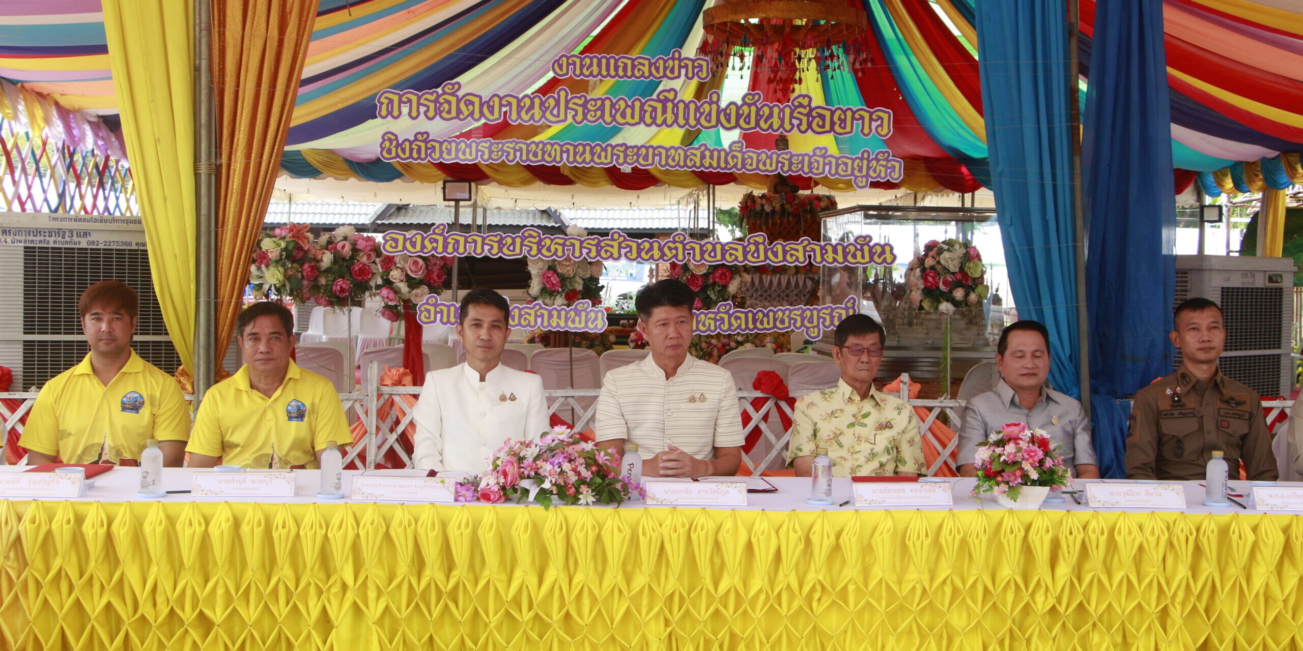 วันที่ 29 ตุลาคม 2567 เวลา 10.30 น. ที่บริเวณหน้าที่ว่าการอำเภอบึงสามพัน จังหวัดเพชรบูรณ์ นายกกชัย ฉายรัศมีกุล รองผู้ว่าราชการจังหวัดเพชรบูรณ์ เป็นประธานแถลงข่าวการจัดงานประเพณีแข่งขันเรือยาวองค์การบริหารส่วนตำบลบึงสามพัน ชิงถ้วยพระราชทานพระบาทสมเด็จพระเจ้าอยู่หัว และสมเด็จพระนางเจ้าฯ พระบรมราชินี โดยมี นายกองตรีพรพงษ์ ไหมแพงชาญชัยภัครธากูร นายอำเภอบึงสามพัน นายนิติ รุ่งเจริญกิจ นายกองค์การบริหารส่วนตำบลบึงสามพัน และผู้ที่เกี่ยวข้องร่วมแถลงข่าว