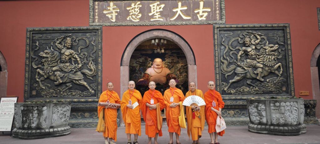 โดยในอดีตคณะศิษยานุศิษย์หลวงพ่อธัมมชโย ได้ไปถวายองค์พระประธานและปัจจัยร่วมสมทบในการบูรณะวัดต้าฉือและวัดเหวินซูเยี่ยนซึ่งเป็นวัดใหญ่เก่าแก่แห่งเมืองเฉิงตู มณฑลเสฉวน