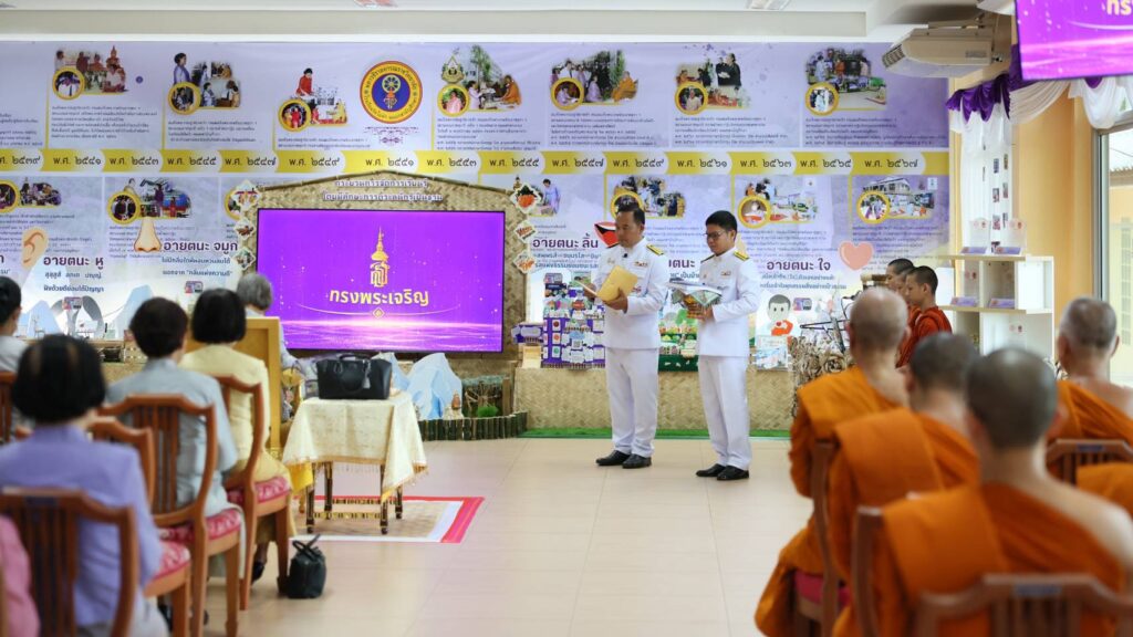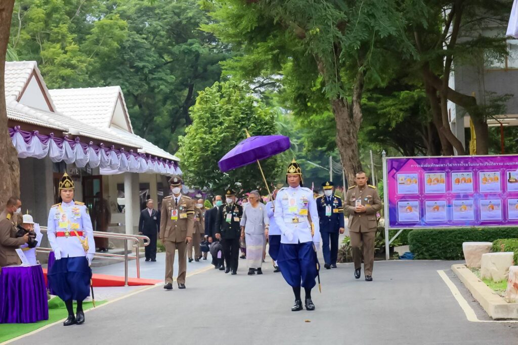 จากนั้น ทรงพระดำเนินไปอาคารห้องสมุด “กฤษณเวฬุ” ถวายข้าวเหนียวพระราชทานแก่ผู้แทนพระสงฆ์ของโรงเรียนวัดไผ่ดำ แผนกสามัญศึกษา แล้วทอดพระเนตรการเรียนการสอนของสามเณรนักเรียนโรงเรียนวัดไผ่ดำฯ เป็นนิทรรศการวิชาการตระหนักรู้ ทักษะที่ส่งเสริมการเรียนรู้ให้มีประสิทธิภาพมากยิ่งขึ้น เช่น กิจกรรมเสริมสร้างทักษะการตระหนักรู้อายตนะ ทั้ง 6 คือ ตา หู จมูก ลิ้น กาย และใจ นอกจากนี้ ได้สาธิตทักษะการเขียน การวาด การประดิษฐ์ การบันทึกเสียง การเขียนสตอรีบอร์ด และการตัดต่อภาพ เผยแพร่ในยูทูปช่อง “เณรไผ่สตูดิโอ” เพื่อเป็นเวทีแสดงออกการสอนธรรมะของสามเณร และด้วยสำนึกในพระมหากรุณาธิคุณด้านการศึกษาที่ทรงมีต่อสามเณร ส่งผลให้สามเณรทุกรูปตั้งใจเล่าเรียน จนได้รับรางวัลชนะเลิศการแข่งขันโครงงานวิทยาศาสตร์ ประเภทสิ่งประดิษฐ์ ระดับชั้นมัธยมศึกษาตอนปลาย, รางวัลชนะเลิศการประกวดทำหนังสั้น ระดับมัธยมศึกษาปีที่ 1-6 ในการแข่งขันทักษะทางวิชาการ ระดับเขตครั้งที่ 15 ประจำปีการศึกษา 2567