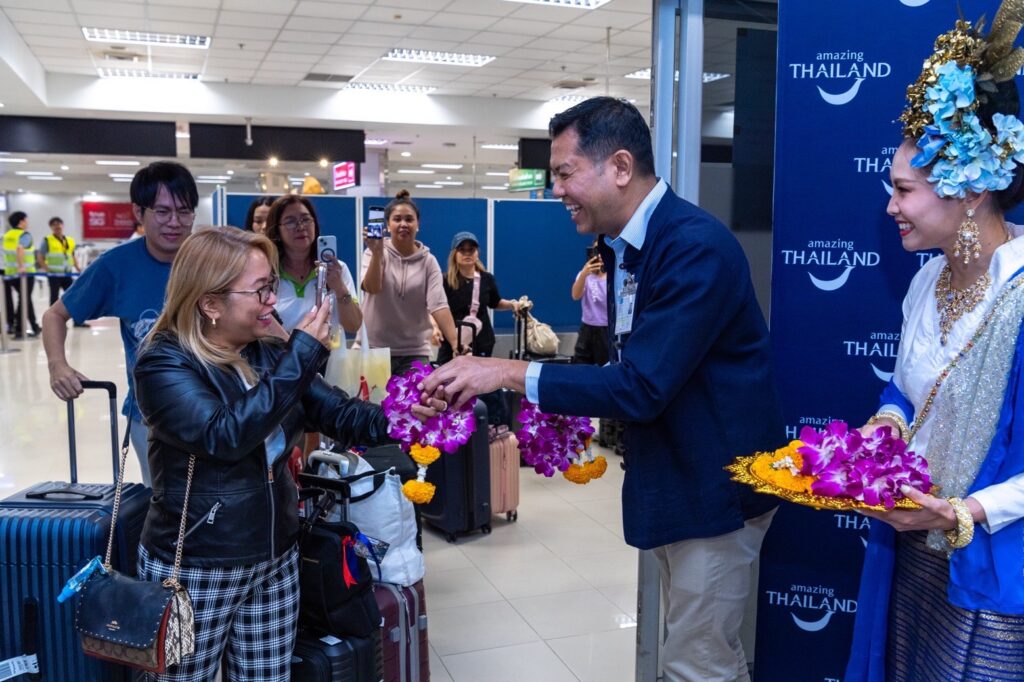 เมื่อวันที่ 30 ตุลาคม 2567 ณ ท่าอากาศยานเชียงใหม่ จังหวัดเชียงใหม่ การท่องเที่ยวแห่งประเทศไทย (ททท.) นำโดยนางสาวภัทรอนงค์ ณ เชียงใหม่ รองผู้ว่าการด้านตลาดเอเชีย และแปซิฟิกใต้ ททท. นางพัศลินทร์ เศวตรัตน์ ผู้อำนวยการ ททท. สำนักงานเชียงใหม่ และนาย ณัฐจิต อุ่นเสียม ผู้อำนวยการกองตลาดอาเซียน เอเชียใต้ และแปซิฟิกใต้ ททท. ร่วมให้การต้อนรับนักท่องเที่ยวชาวฟิลิปปินส์ที่เดินทางมาพร้อมเที่ยวบินปฐมฤกษ์ 5J874 ของสายการบิน Cebu Pacific Air บินตรงจากกรุงมะนิลา สาธารณรัฐฟิลิปปินส์ ถึงจังหวัดเชียงใหม่ ถือเป็นสัญญาณบวกของการกระตุ้นนักท่องเที่ยวฟิลิปปินส์เข้าเที่ยวไทยช่วงปลายปี 2567