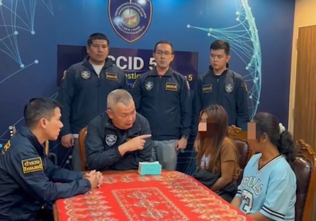 วันที่ 1 พ.ย.67 ผู้สื่อข่าวรายงาน ว่า ที่กองบังคับการตำรวจสืบสวนสอบสวนอาชญากรรมทางเทคโนโลยี 5 พล.ต.ต.จิระวัฒน์ พยุงธรรม รรท.ผบช.สอท. สั่งการให้พล.ต.ต.ภูมิพัฒน์ ภัทรศรีวงษ์ชัย ผบก.สอท.5 พ.ต.อ.บัญชา ศรีสุข รอง ผบก.สอท.5 พ.ต.อ.ฐาปกรณ์ หนุมาศ ผกก.3 บก.สอท.5 พร้อมเจ้าหน้าที่ กก.วิเคราะห์ข่าวบก.สอท.5 นำหมายจับศาลจังหวัดนครศรีธรรมราช ที่ จ.564-565 /2567 ลงวันที่ 30 ตุลาคม 2567 เข้าจับกุมตัวนางสุภาพ อายุ 51 ปี และ น.ส.สุนิษา อายุ 26 ปี ที่รับเปิดบัญชีม้าให้แก๊งคอลเซ็นเตอร์หลอกโอนเงิน โดยจับกุมได้บริเวณที่จอดรถในต.หนองปรือ อ.บางละมุง จ.ชลบุรี