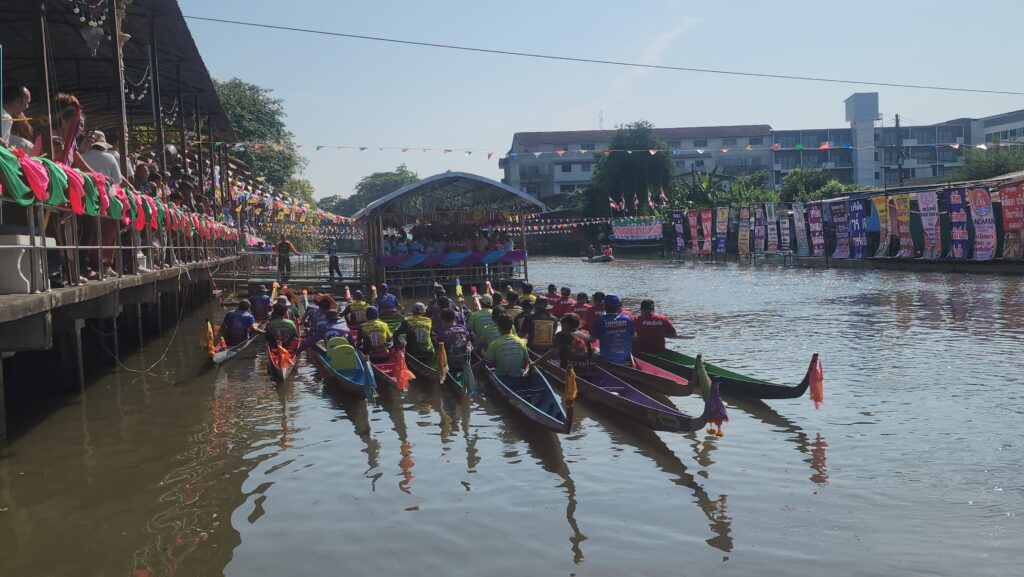 ซึ่งมีขบวนเรือที่ร่วมแห่กฐินทางน้ำจำนวน 60 ลำ โดยเริ่มที่แพหน้าที่ว่าการอำเภอลำลูกกา เป็นจุดลงเรือล่องไปตามลำคลองหกวา มุ่งหน้าไปที่วัดนังคัลจันตรี มีประชาชนร่วมบุญพิธีจำนวนมาก พร้อมกันนี้ยังมีคณะศิษยานุศิษย์ บูชาธรรม 80 ปี หลวงพ่อธัมมชโย ภายใต้โครงการกฐินสามัคคีทั่วไทย 30,000 วัด ประจำปีพุทธศักราช 2567 ร่วมบุญกฐินที่วัดนังคัลจันตรี ในวันนี้ด้วย สำหรับการแข่งขันเรือพายพื้นบ้าน ทางเทศบาลตำบลลำลูกกาได้จัดการแข่งขันเรือพายพื้นบ้าน ประเภท 7 ฝีพาย โดยมีผู้เข้าร่วมการแข่งขันจากชุมชนทั้งในพื้นที่และนอกพื้นที่ จำนวนทั้งสิ้น 12 ลำ โดยมีคณะกรรมการจัดงาน ได้จัดเตรียมมาตรการรักษาความปลอดภัยและความเรียบร้อยต่างๆ เพื่อให้การแข่งขันดำเนินการให้เป็นไปอย่างราบรื่นและปลอดภัย
