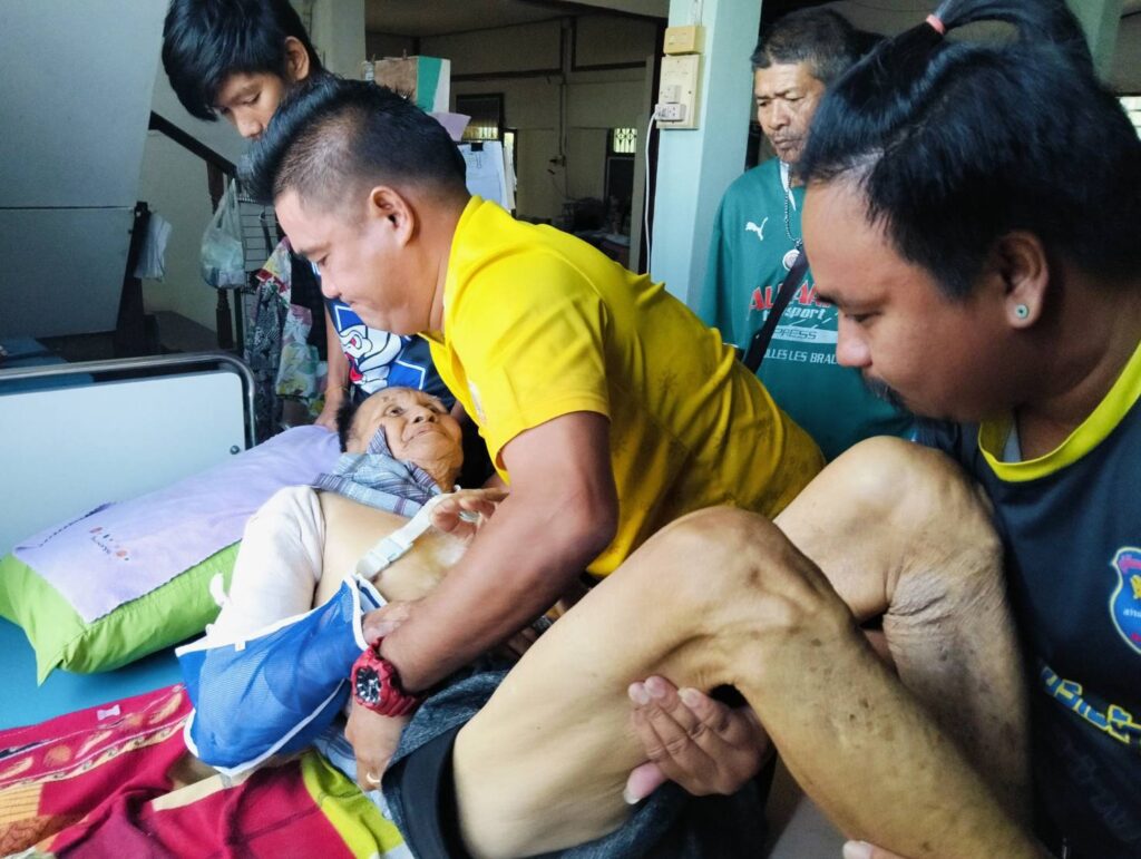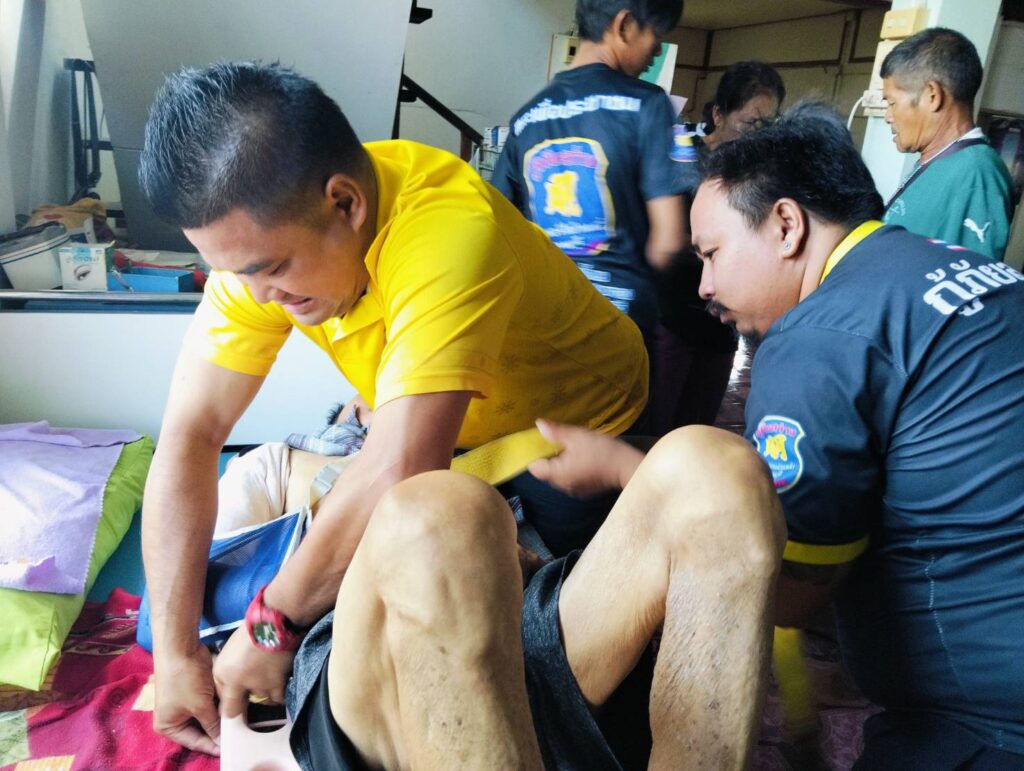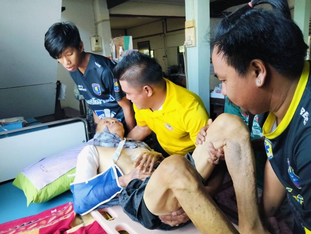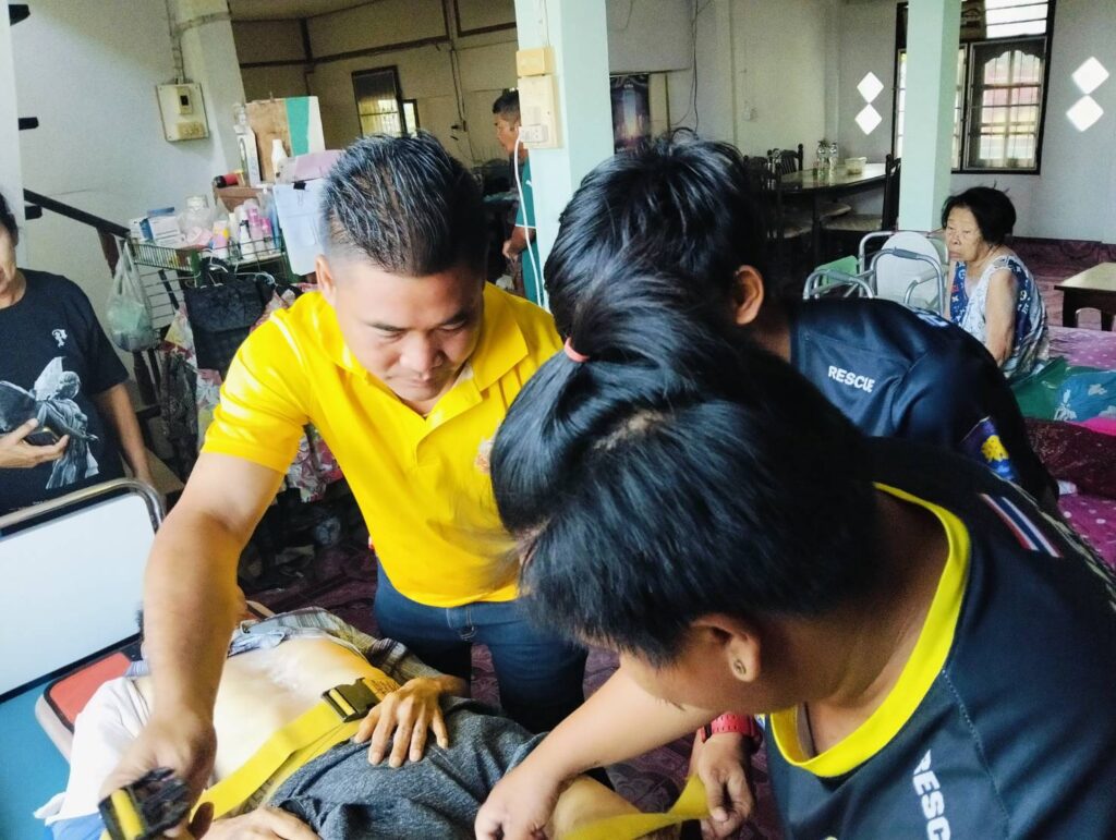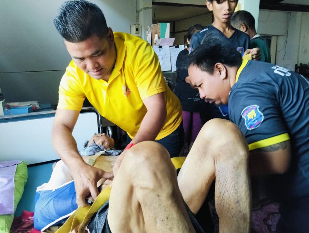 ได้รับแจ้งจากญาติของนาย อาภรณ์ สำอางค์ อายุ 85 ปี บ้านเลขที่ 139 หมู่ที่ 4 ต.หนองทรายขาว ขอรถรับผู้ป่วยสาเหตุจากลื่นล้นจึงได้มอบหมายให้เลขานุการนายก อบต.หนองทรายขาว ลงพื้นที่พร้อมประสานรถหน่วยกู้ภัยสว่างอริโยบ้านหมี่ รับผู้ได้รับบาดเจ็บอาการเบื้องต้น ผู้ป่วยมีอาการปวดแขนด้านขวา จึงได้นำตัวส่ง รพ.บ้านหมี่ เพื่อค่ารักษาตัวต่อไป