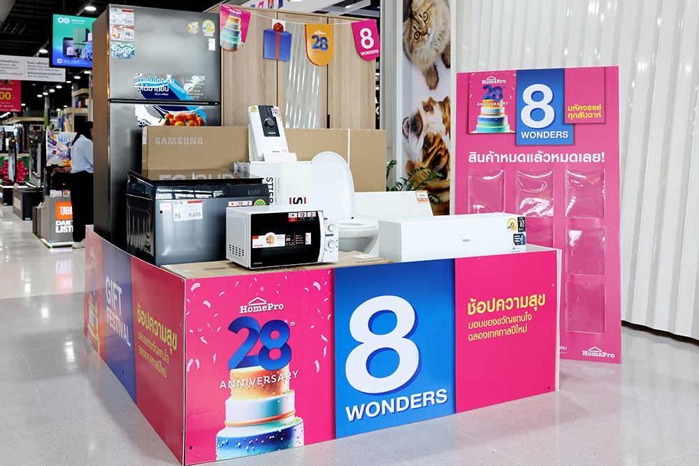 นางสาวพัชริชยา พรหมสุข ผู้จัดการทั่วไป สาย Demand Generation บริษัท โฮม โปรดักส์ เซ็นเตอร์ จำกัด (มหาชน) หรือ ‘โฮมโปร’ เผยว่า “ความสำเร็จตลอด 28 ปีของโฮมโปร ในฐานะผู้นำค้าปลีกเรื่องบ้าน Home Solution and Living Experience in Thailand เกิดจากความมุ่งมั่นที่จะตอบสนองทุกความต้องการเรื่องบ้านของคนไทย เราทำการบ้านหนักอย่างต่อเนื่องร่วมกับพาร์ทเนอร์แบรนด์ชั้นนำ ในการคิดวิเคราะห์ ตลอดจนพัฒนาเป็นสินค้าที่มีคุณภาพออกมา และส่งต่อสินค้าคุณภาพ พร้อมสร้างประสบการณ์พิเศษให้กับลูกค้า ได้ช้อปอย่างครอบคลุมทุกช่องทาง จนกลายเป็นที่ยอมรับ เมื่อนึกถึงเรื่องบ้าน นึกถึงโฮมโปร-ศูนย์รวมความสะดวกและคุ้มค่าของคนรักบ้าน ทั้งในไทยและเอเชียตะวันออกเฉียงใต้ ซึ่งในเดือนพฤศจิกายนนี้ โฮมโปรครบรอบ 28 ปี บริษัทจึงได้จัดช่วงเวลาแห่งความมหัศจรรย์ต่อเนื่องตลอด 8 สัปดาห์ ไปจนถึงสิ้นปี 2567 เพื่อส่งต่อความสุข ความพิเศษให้กับทุกคน ภายใต้แคมเปญ “HomePro 28th Anniversary” 8 WONDERS มหัศจรรย์ทุกสัปดาห์”