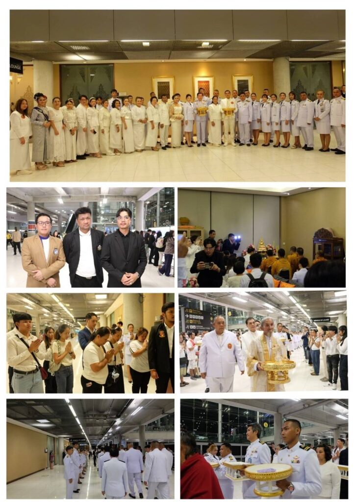 วันที่ 4 พฤศจิกายน 2567 เวลา 17.00 น. ที่ท่าอากาศยานสุวรรณภูมิ : ดร.ประกาย ณ สงขลา ประธานสภาส่งเสริมวัฒนธรรมอาเซียน,ทนายอนันต์ชัย ไชยเดช ประธานกรรมการมูลนิธิทนายกองทัพธรรม พร้อมด้วยนางณภัสนันท์ ไชยเดช ภรรยา,นายเรืองเดช ลิ้มเลิศผลบุญ สภาส่งเสริมวัฒนธรรมอาเซียน,Mr.Teh Choo Boon สภาส่งเสริมวัฒนธรรมอาเซียน (มาเลเซีย) และคณะศรัทธาทั้งชาวไทยและมาเลเซียอีกหลายชีวิต อัญเชิญพระบรมสารีริกธาตุ (สัณฐานทั่วไป) ที่ได้ ประกอบพิธีสักการะ พระมหาเจดีย์พุทธคยาเสร็จพิธีแล้ว รับมอบจากพระอาจารย์กฤษฎา สิริวฑฺฒโน เจ้าอาวาสวัดเมตตาพุทธาราม พุทธคยา สาธารณรัฐอินเดีย เดินทางถึงท่าอากาศยานสุวรรณภูมิ โดยมีวัฒนธรรมจังหวัดสมุทรปราการ จำนวน 5 ท่าน,ดร.นกรณ์ สุคนธชาติ ผู้ทรงคุณวุฒิในองค์หม่อมเจ้าอุทัยกัญญา ภาณุพันธุ์ ,อาจารย์จุฑามาศ ณ สงขลา เลขาธิการสมาคมนักเขียนแห่งประเทศไทย,บรรดาทูตวัฒนธรรมของสภาส่งเสริมวัฒนธรรมอาเซียน พร้อมด้วยเหล่าสมาชิกสภาฯและผู้มีจิตศรัทธา เฝ้ารอรับเพื่อถวายสักการะ โดยในวันนี้มีผู้เฝ้ารอถวายสักการะนับร้อยคน ด้วยความเชื่อทางพระพุทธศาสนาที่เชื่อว่า ผู้ใดได้สักการะพระบรมสารีริกธาตุ ถือเป็นมงคลสูงสุดอย่างหนึ่ง