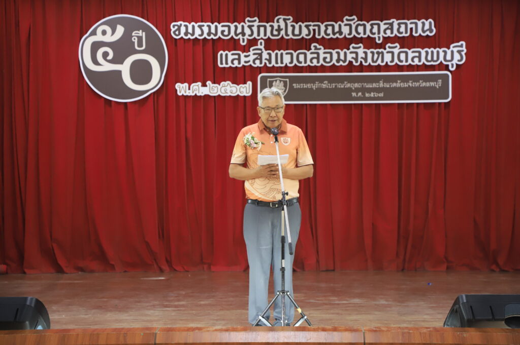 วันที่ 5 พฤศจิกายน 2567 เวลา 09.00 น. ที่แหล่งสมาคมหน่วยบัญชาการสงครามพิเศษ จังหวัดลพบุรี นายปรัชญา เปปะตัง รองผู้ว่าราชการจังหวัดลพบุรี ร่วมเป็นเกียรติในงานครบรอบ 50 ปี ชมรมอนุรักษ์โบราณวัตถุสถานและสิ่งแวดล้อมจังหวัดลพบุรี โดยมี อาจารย์ภูธร ภูมะธน อดีตประธานอาวุโส ที่ปรึกษาชมรมฯ