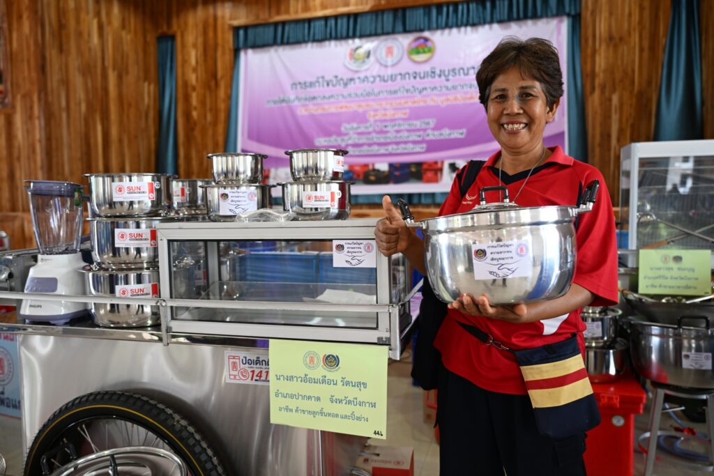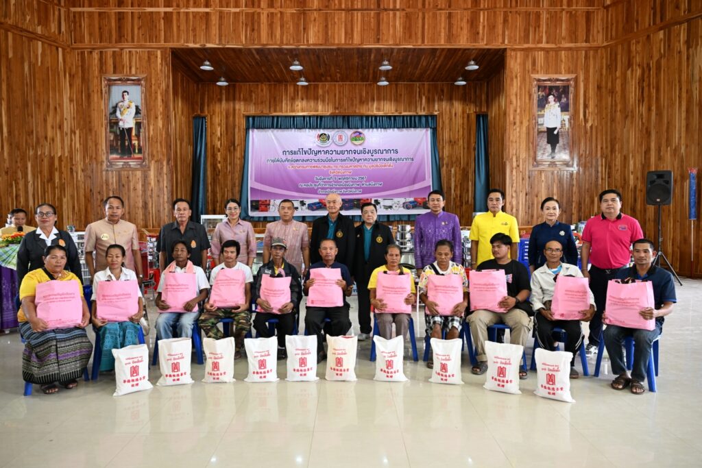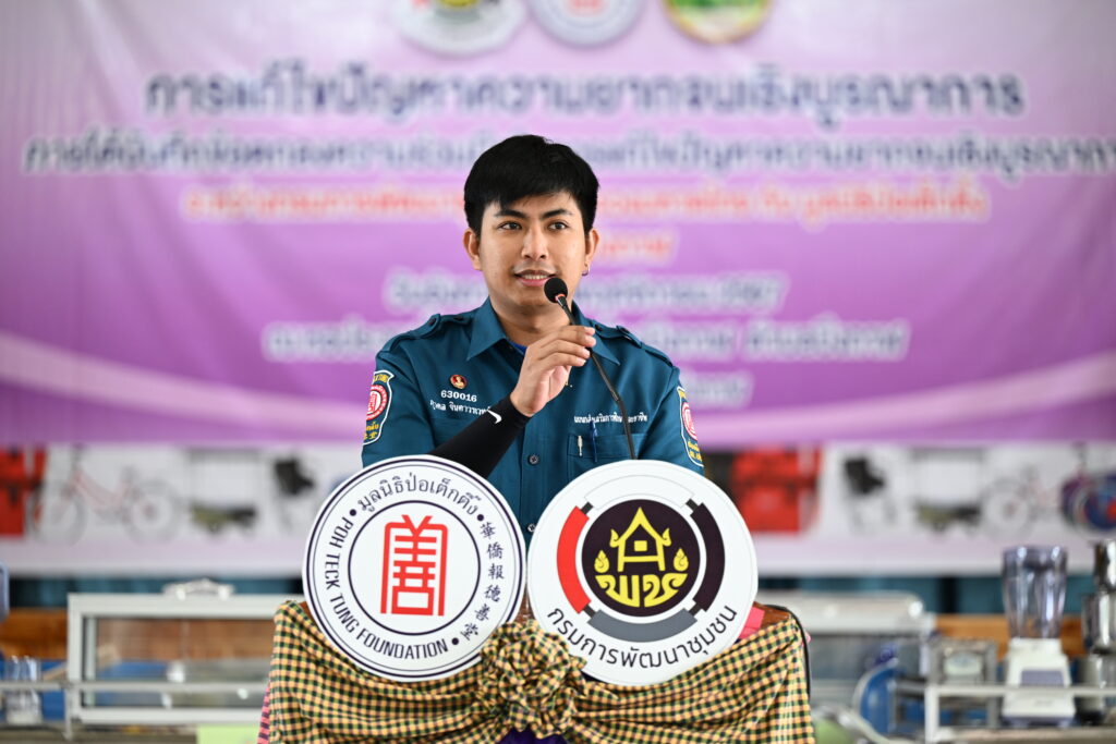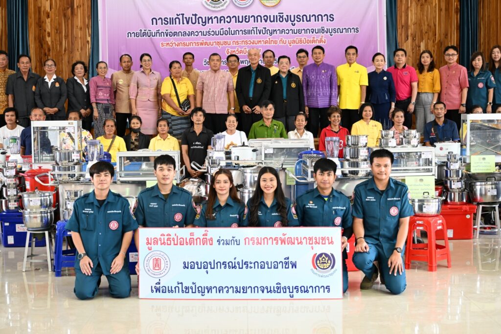 โครงการแก้ไขปัญหาความยากจนเชิงบูรณาการ มูลนิธิป่อเต็กตึ๊ง ได้สนับสนุนอุปกรณ์ประกอบอาชีพ ช่วยเหลือครัวเรือนยากจน ตามบันทึกข้อตกลงความร่วมมือแก้ไขปัญหาความยากจน ระหว่างกรมการพัฒนาชุมชนและมูลนิธิป่อเต็กตึ๊ง ซึ่งมูลนิธิฯ ได้จัดงบประมาณดำเนินการเพื่อจัดหาวัสดุอุปกรณ์การประกอบอาชีพมอบให้แก่ครัวเรือนยากจน ให้สามารถประกอบอาชีพเลี้ยงตนเองและครอบครัว โดยในกลุ่มเป้าหมายแรกดำเนินการในพื้นที่ภาคกลาง 17 จังหวัด รวม 98 ครัวเรือน ต่อมา ได้ดำเนินการในพื้นที่จังหวัดทางภาคเหนือ 17 จังหวัด รวม 230 ครัวเรือน ซึ่งได้ดำเนินการเป็นที่เรียบร้อยแล้ว และในขณะได้พิจารณาพื้นที่ภาคตะวันออกเฉียงเหนือ รวม 20 จังหวัด ประกอบด้วย จังหวัดบุรีรัมย์ สุรินทร์ กาฬสินธุ์ ชัยภูมิ นครราชสีมา อุดรธานี มุกดาหาร หนองบัวลำภู บึงกาฬ ยโสธร ศรีสะเกษ มหาสารคาม ขอนแก่น อุบลราชธานี ร้อยเอ็ด อำนาจเจริญ สกลนคร เลย หนองคาย และ นครพนม ซึ่งปัจจุบันทางมูลนิธิป่อเต็กตึ๊งได้ลงพื้นที่มอบอุปกรณ์ฯ ในพื้นที่ภาคตะวันออกเฉียงเหนือไปแล้วทั้งสิ้น 15 จังหวัด 360 ครัวเรือน รวมเป็นมูลค่าทั้งสิ้น 7,913,654 บาท (เจ็ดล้านเก้าแสนหนึ่งหมื่นสามพันหกร้อยห้าสิบสี่บาทถ้วน)
