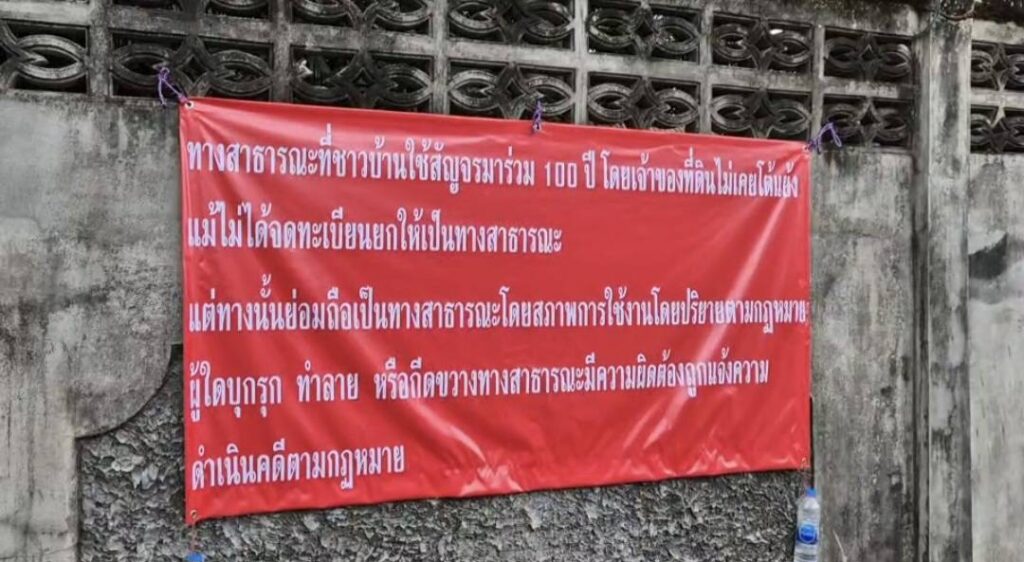 ประชาชนที่พักอาศัยในซอย เล่าให้ผู้สื่อข่าวฟังว่าตนเองเดิมทีอยู่ที่อื่นพอแต่งงานก็ย้ายมาที่นี่ก็หลายปี พอรู้ข่าวว่ามีการวัดเส้นแบ่งตารางภายในซอยปากทางเข้าชุมชน ก็รู้สึกไม่สบายใจเพราะว่าตัวเองก็อยู่มาหลายสิบปีแล้ว หากถูกปิดกั้นอย่างนั้นภายในซอยเกิดเหตุหรือเกิดเพลิงไหม้ก็ไม่สามารถที่จะเข้ามาช่วยคนภายในซอยได้ รู้สึกไม่ดีเหมือนกันอยากให้เขาเข้าใจคนที่อยู่ภายในซอยมาก่อนว่าใช้ทางนี้เป็นทางหลักทางสัญจรออกไปนอกถนนใหญ่ บางบ้านก็มีคนเฒ่าคนแก่บางบ้านก็มีผู้ป่วยที่ต้องใช้เส้นทางนี้เป็นประจำ หากถูกปิดกั้นแล้วก็คงจะเดินทางกันลำบากแม้แต่เดินสวนกันก็ยังไม่ได้ อยากฝากบอกเจ้าของที่ดินแปลงนี้ว่า ช่วยเหลือที่ให้พวกเราได้สัญจรเข้าออก ให้เราได้เดินทางหรือให้คนเฒ่าคนแก่ออกไปหาหมอได้อย่างสะดวกเถอะค่ะ อยากฝากไว้แค่เท่านี้ วอนสื่อขอความเป็นธรรมด้วยนะคะ
