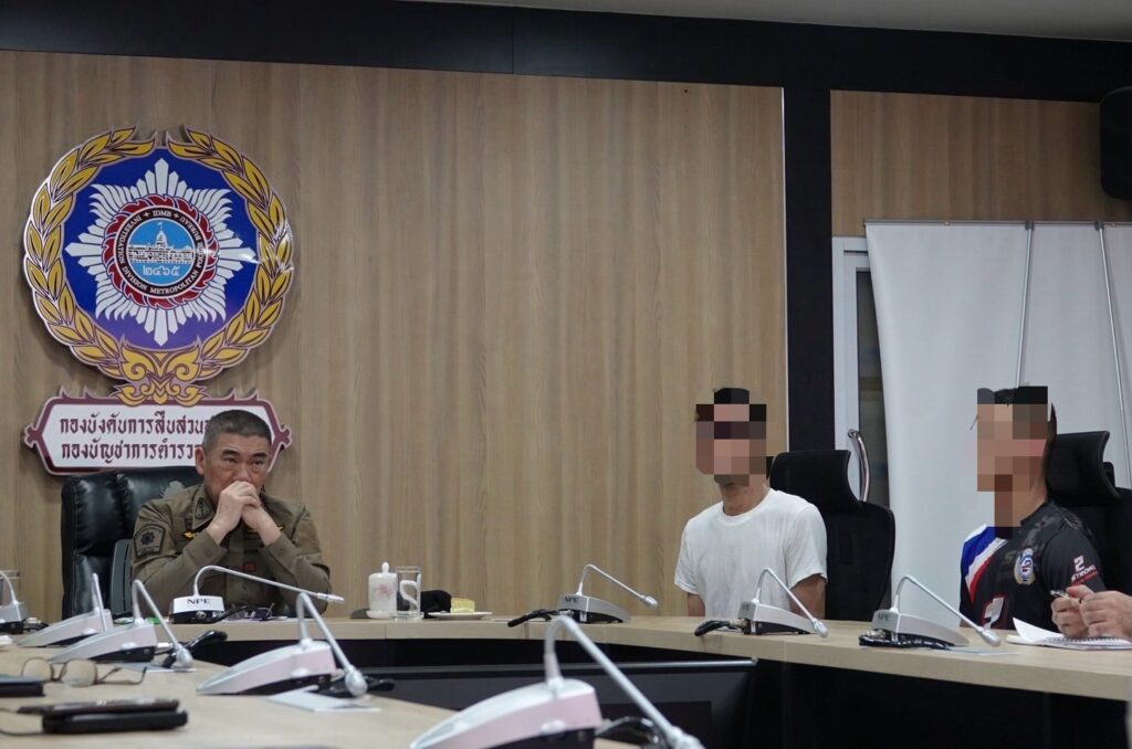 ร่วมกันสืบสวนขยายผลติดตามจับกุมตัว นายนิกิ (NIKI) อายุ 45 ปี สัญชาติญี่ปุ่น ผู้ต้องหาตามหมายจับศาลอาญาที่ จ.5034/2567 ลงวันที่ 17 ต.ค.2567 ข้อหา “รวมกันกรรโชกทรัพย์ผู้อื่น” และ นายโทมิกิ (TOMIKI) อายุ 26 ปี สัญชาติญี่ปุ่น ผู้ต้องหาตามหมายจับศาลอาญาที่ จ.5036/2567 ลงวันที่ 17 ต.ค.2567 ข้อหา “รวมกันกรรโชกทรัพย์ผู้อื่น” โดยจับกุมตัวได้ที่ บ้านเคียงน้ำ รีสอร์ท ต.โป่ง อ.บางละมุง จ.ชลบุรี ตรวจยึดเงินสด จำนวน 179,000 บาท และของกลางในคดีรายละเอียดดังนี้ อุปกรณ์เสพกัญชาแบบบ้อง สีดำ 1 อัน ห้อง B5 นายนิกิ,อุปกรณ์เสพกัญชาแบบบ้อง สีใส 1 อัน ห้อง B5 นายนิกิ ,อุปกรณ์เสพกัญชาแบบบ้อง 1 อัน ห้อง B5 นายนิกิ,ที่บดกัญชา 1 อัน ห้อง B5 นายนิกิ,ถาดใส่กัญชา 1 อัน ห้อง B5 นายนิกิ,ธนบัตรไทย 1,000 บาท 100 ฉบับ ห้อง B5 นายนิกิ รวม 179,000 บาท,ธนบัตรไทย 1,000 บาท 35 ฉบับ ห้อง B5 นายนิกิ,ธนบัตรไทย 1,000 บาท 44 ฉบับ ห้อง B6 นายโทมิกิ,โทรศัพท์มือถือ ไอโฟน 12 สีดำ 1 เครื่อง ห้อง B6 นายโทมิกิ,โทรศัพท์มือถือ ไอโฟน 13 PRO สีดำ 1 เครื่อง ห้อง B5 นายนิกิ ,โทรศัพท์มือถือ Galaxy A14 สีน้ำเงิน 1 เครื่อง ห้อง B6 นายโทมิกิ ,ไอแพด pro 1 เครื่อง,ไอแพด 1 เครื่อง,สมุดเช็ค ธ.ออมสิน 1 ฉบับ,สมุดเช็ค ธ.ไทยพานิชย์ 1 ฉบับ และ กระเป๋า Gucci สีดำ 1 ใบ
