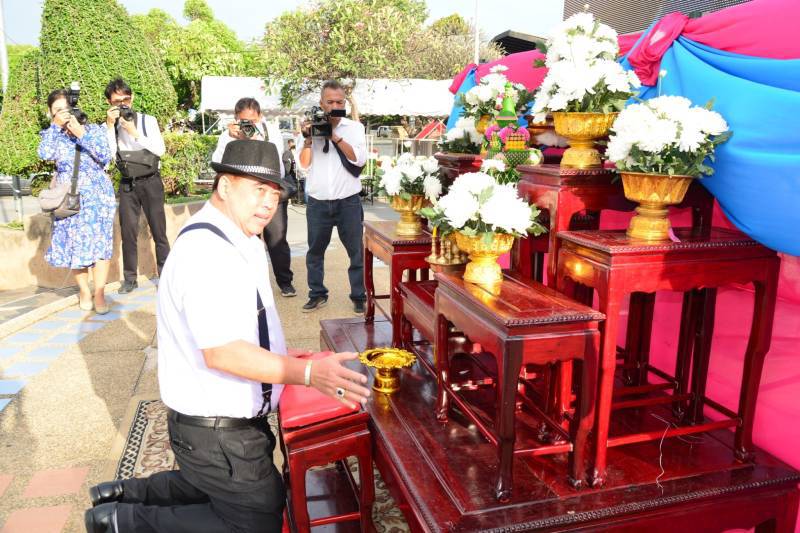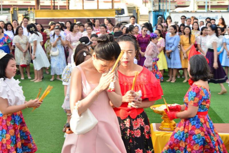 พนักงานเทศบาลเมืองลพบุรี พร้อมด้วยคณะผู้บริหารกว่าครึ่งร้อยร่วมพิธี