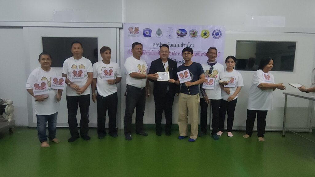 วันที่ 8 พฤศจิกายน 2567 ที่ศูนย์ประสานงานลูกปทุมต้นแบบต้านโกง สาขาลาดหลุมแก้ว ตำบลหน้าไม้ อำเภอลาดหลุมแก้ว จังหวัดปทุมธานี นายพงศธรรศ รุจิพุฒธันยพัต นายกสมาคมนักข่าวปทุมธานี ประธานอำนวยการลูกปทุมต้นแบบต้านโกง ได้ทำพิธีการมอบใบประกาศเชิดชูเกียรติให้กับอาสาสมัครผู้สังเกตการณ์ ป้องกันและปราบปรามทุจริตการเลือกตั้ง เมื่อวันที่ 22 กันยายน 2567 ที่ผ่านมา